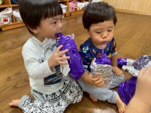 今日は、子どもの日にちなんでみんなで大きなこいのぼりを作りましたよ。