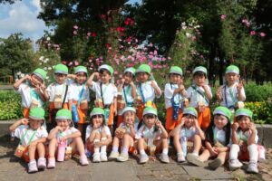 周りのお友だちは「がんばれー!」と応援していますよ。
