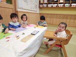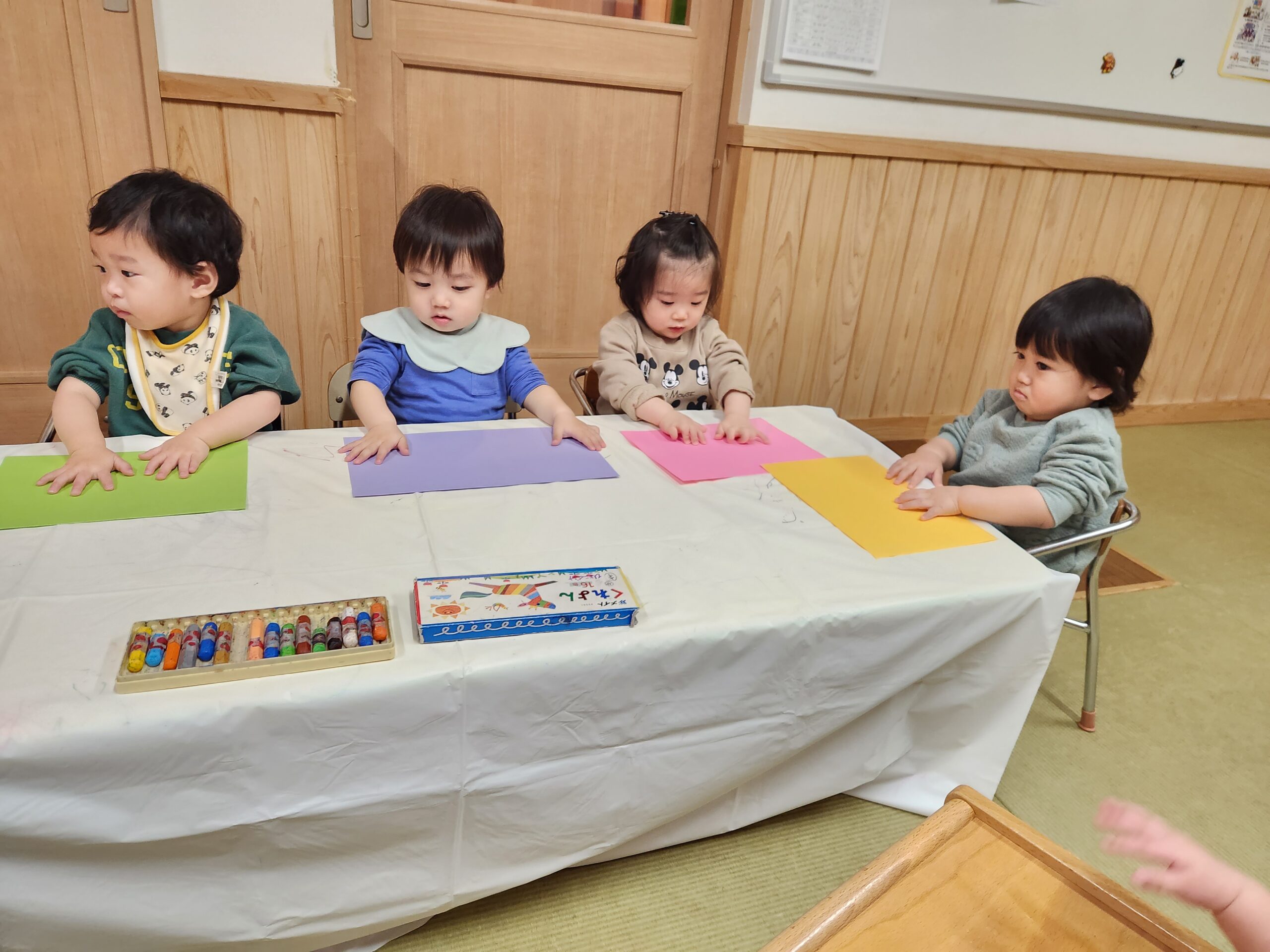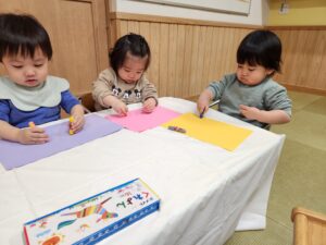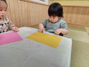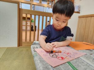 入園した頃は、まだクレヨンが上手く持てなかったのですが、最近は、上手に持てるようになってきました。
