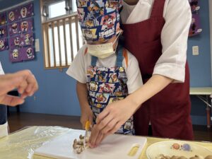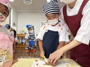 まずは、グループに分かれて❝しめじ❞・❝えのき❞・❝しいたけ❞を切ります🔪