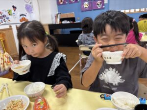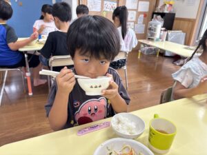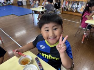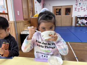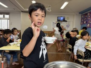 給食の時間になると、「早く食べたーい」と待ちきれない子どもたち🎵