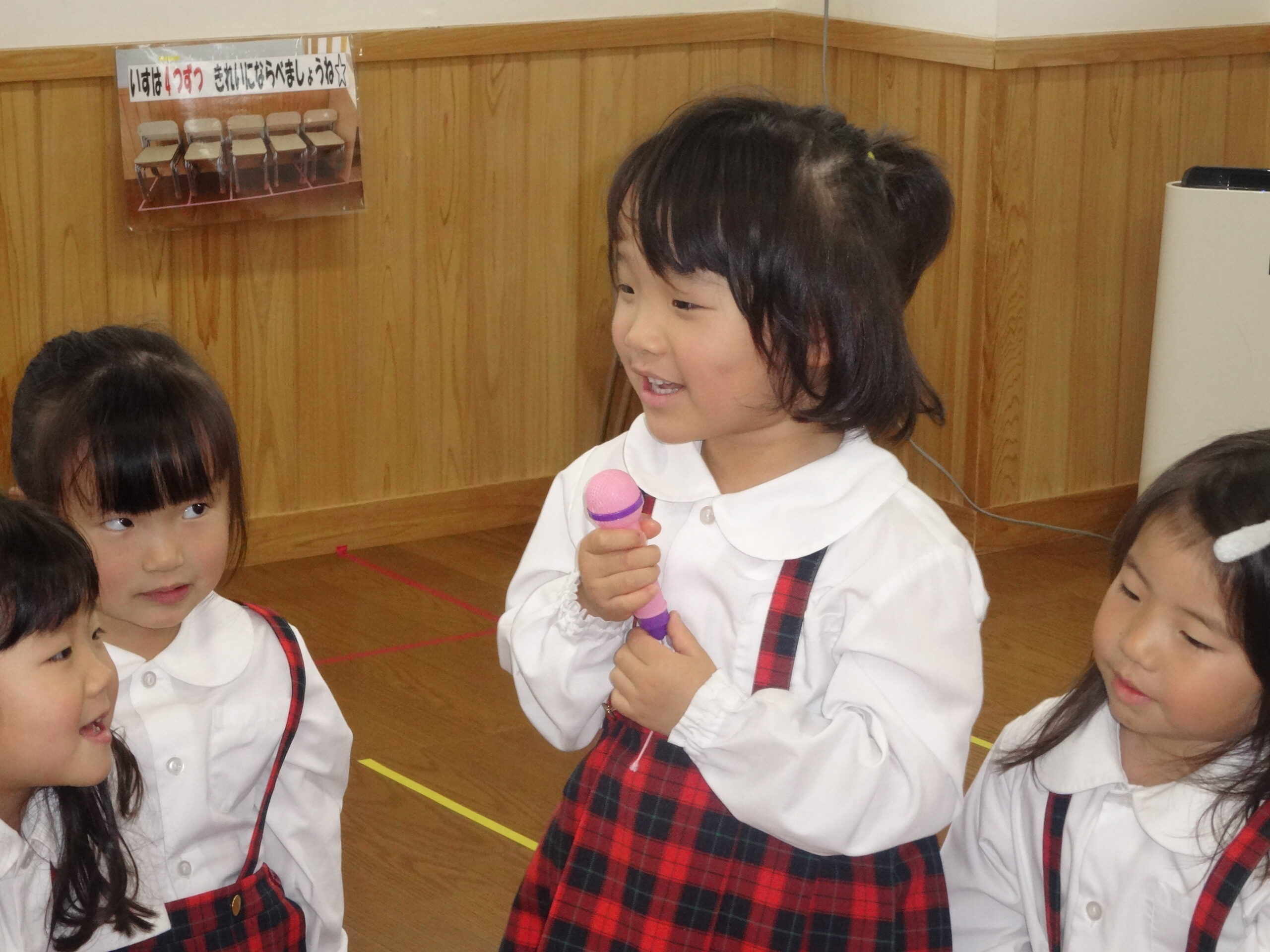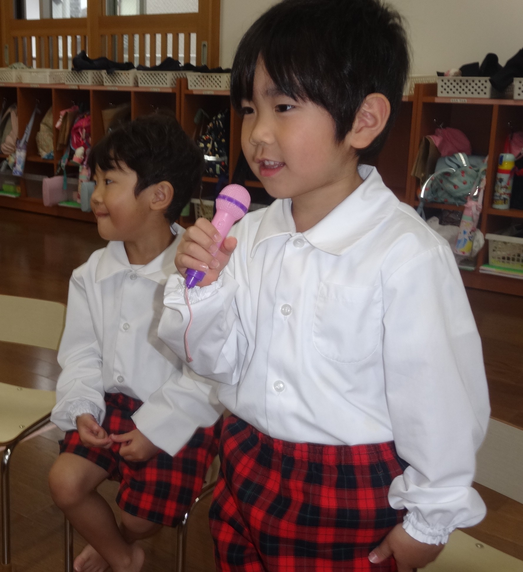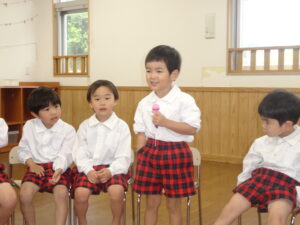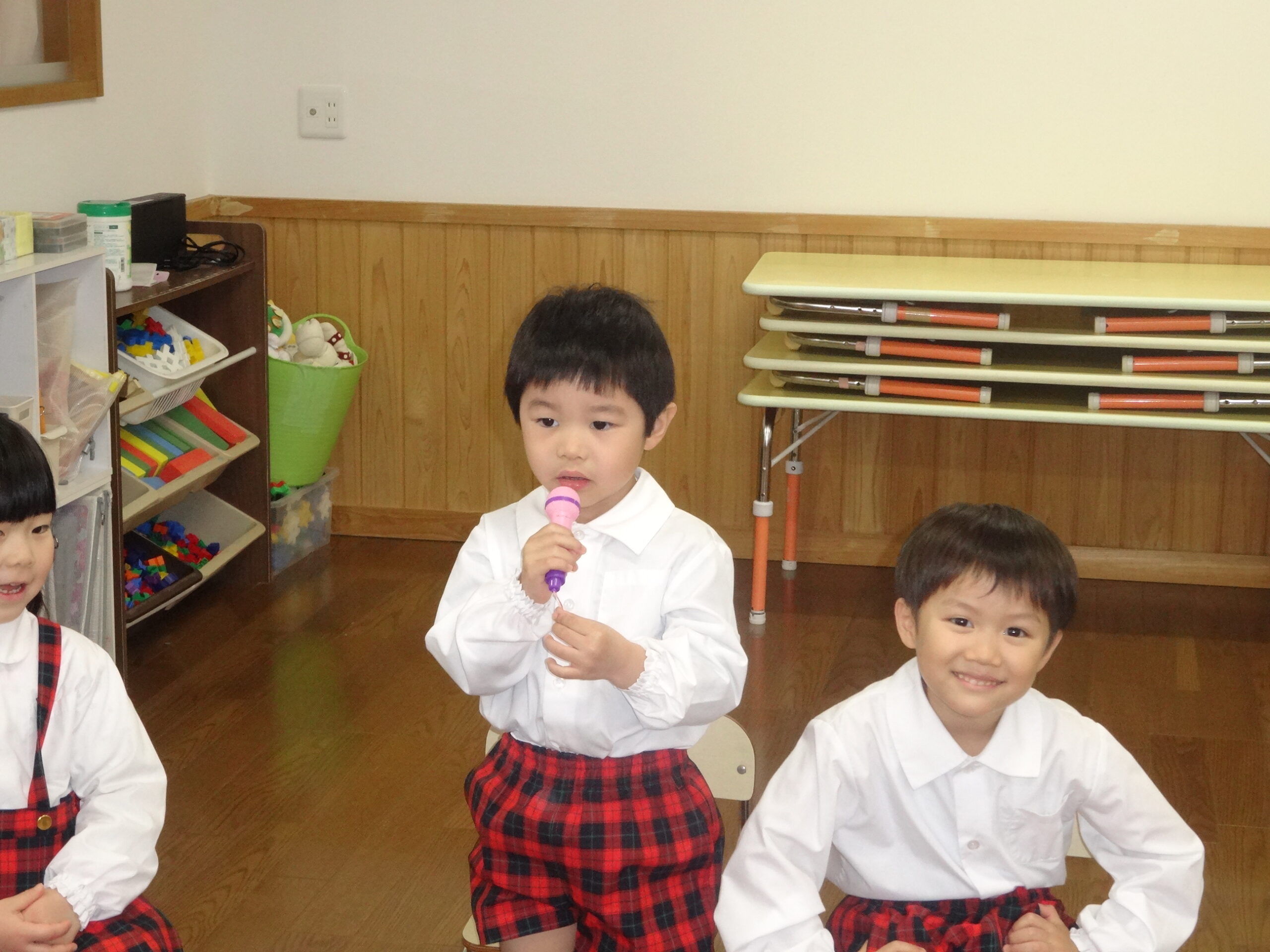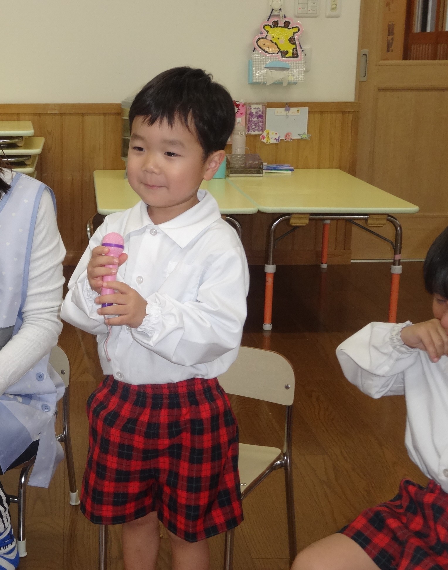 みんなに注目されて、恥ずかしそうでしたが【名前・好きな遊び】など発表してくれました。