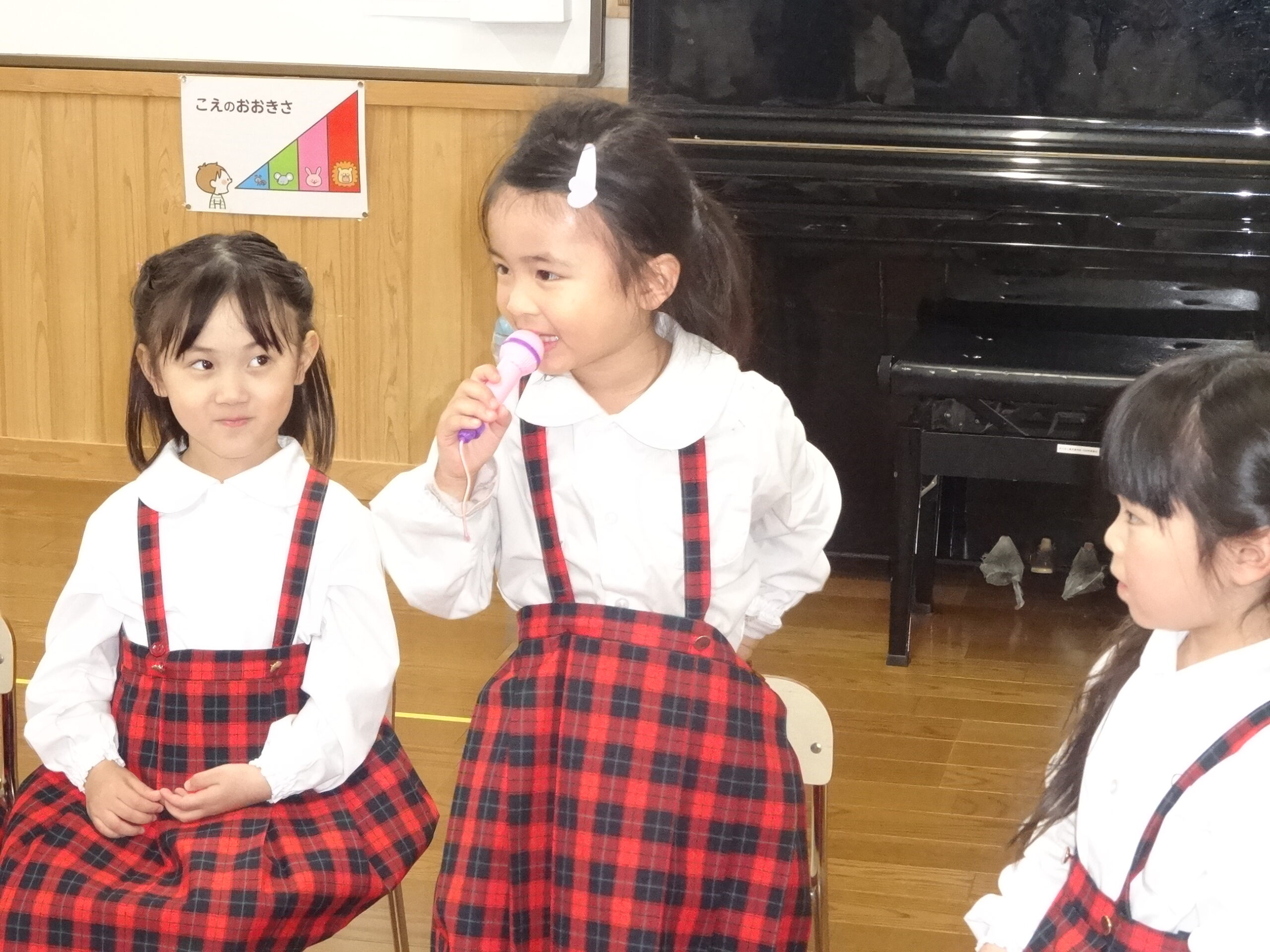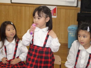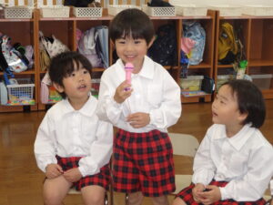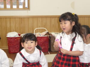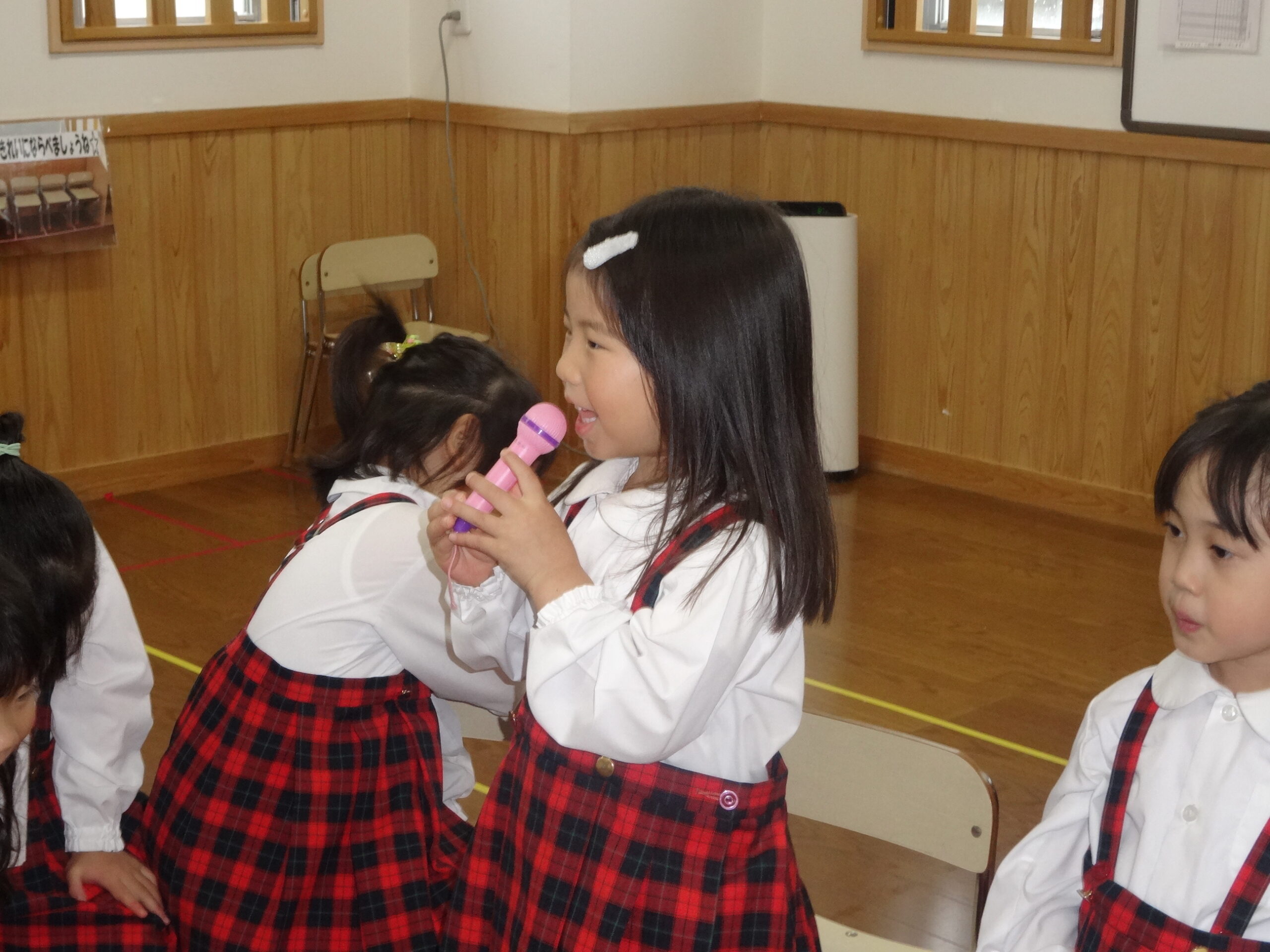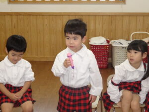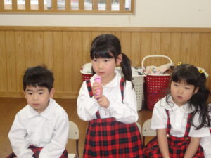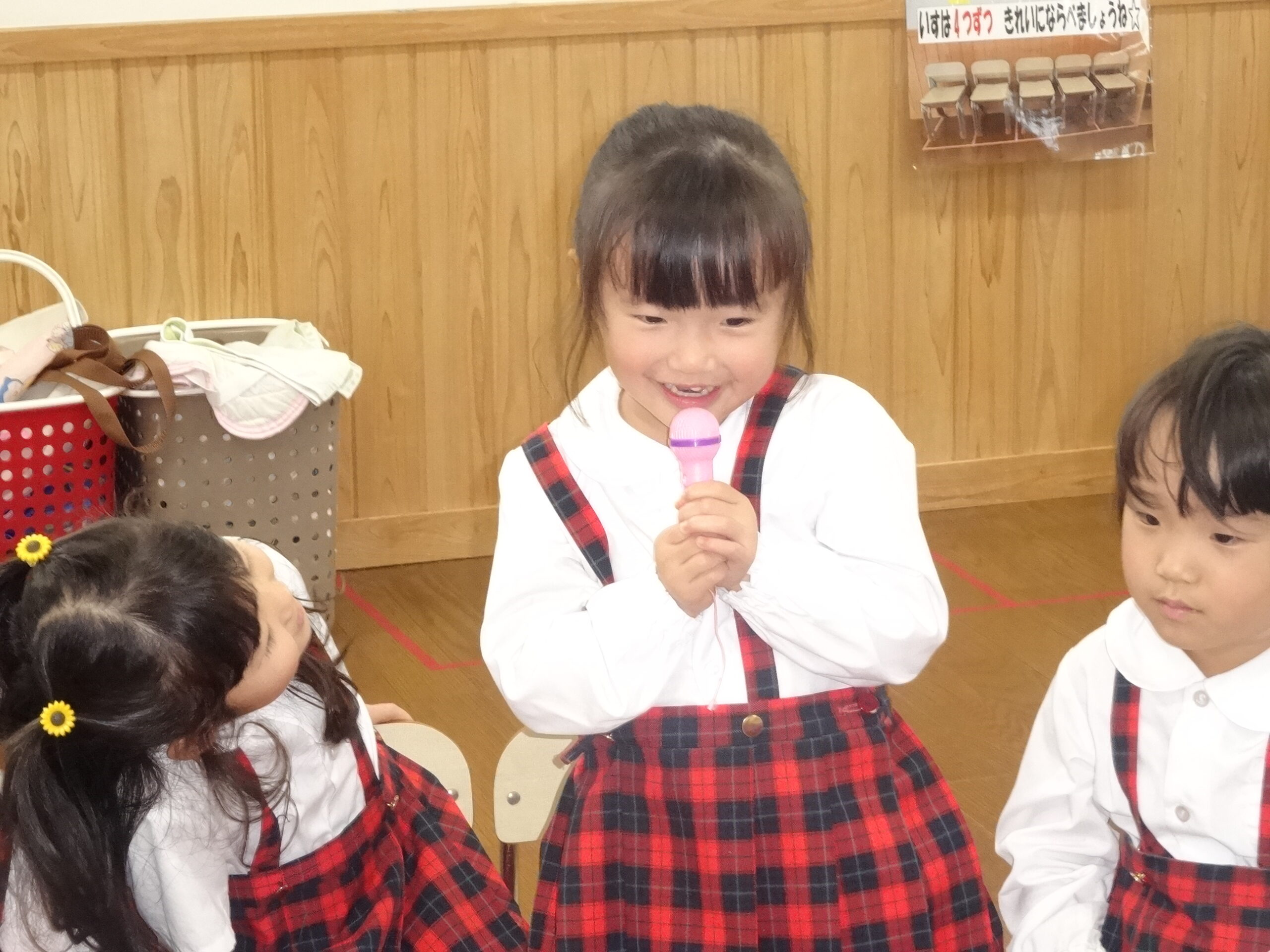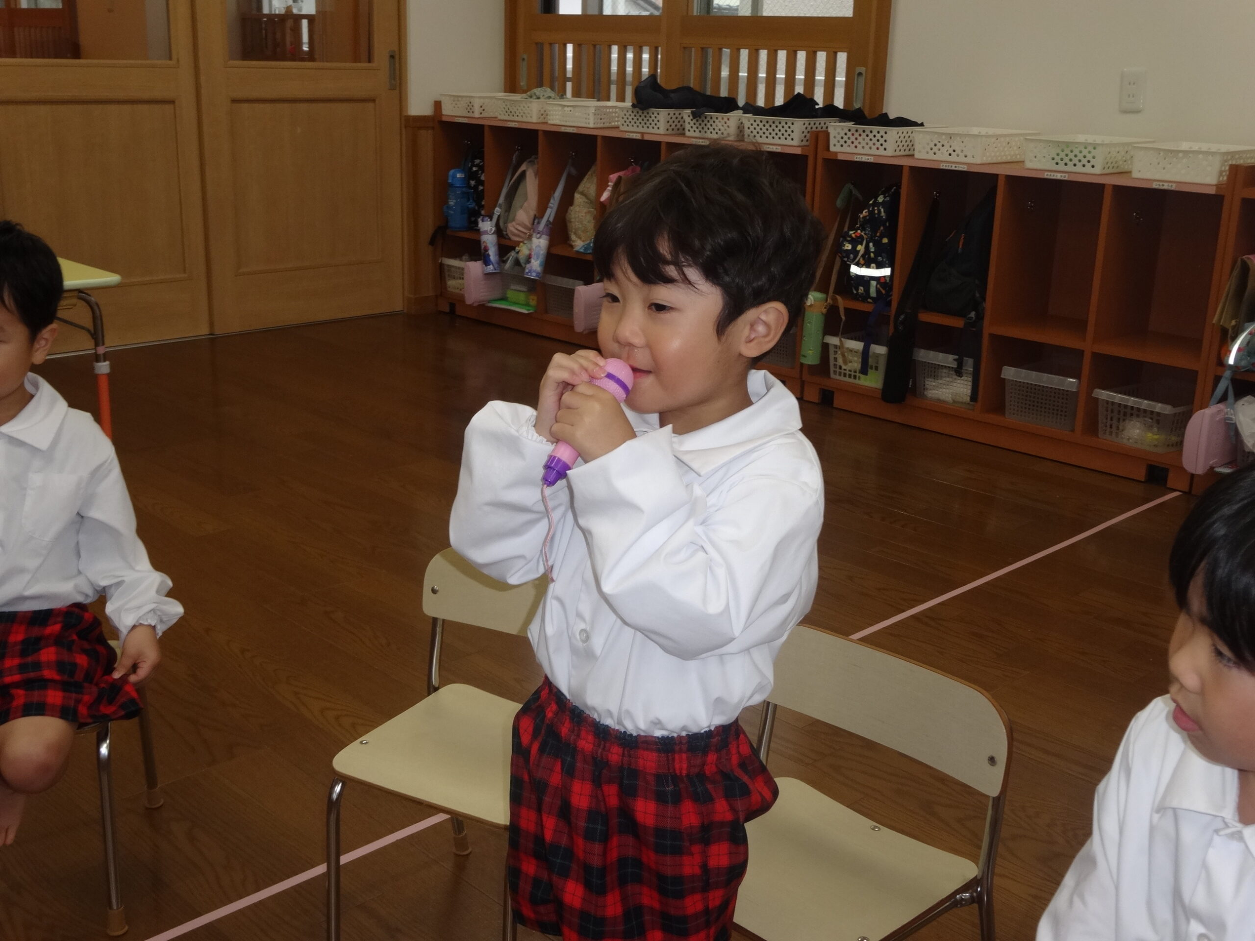 みんなに注目されて、恥ずかしそうでしたが【名前・好きな遊び】など発表してくれました。