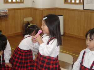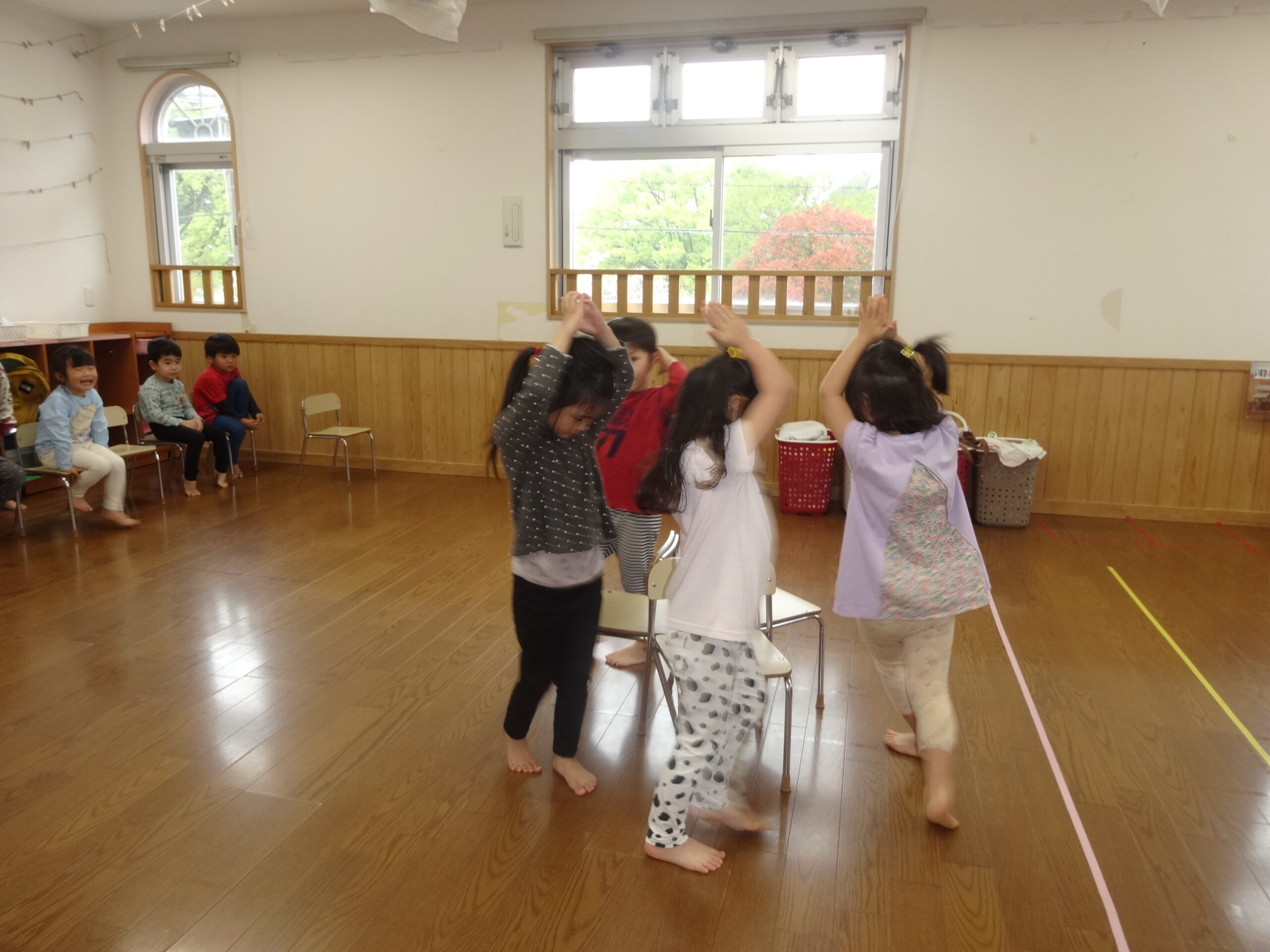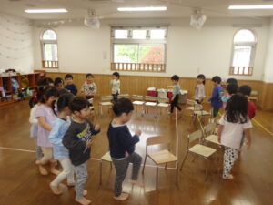 椅子取りゲームでは、負けて泣いてしまうお友だちもいますが・・笑。