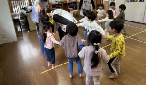 まず、わらべ歌の【糸車】をみんなでやってみました。