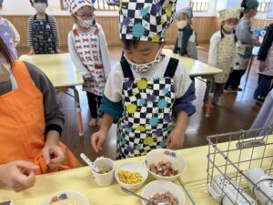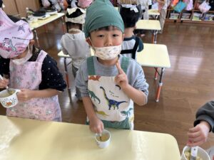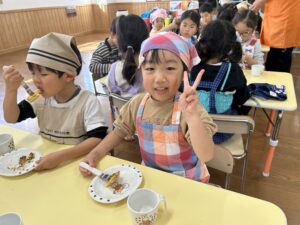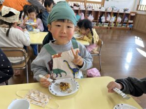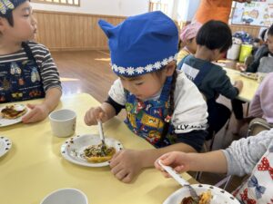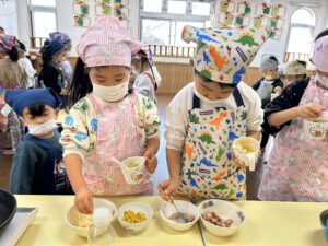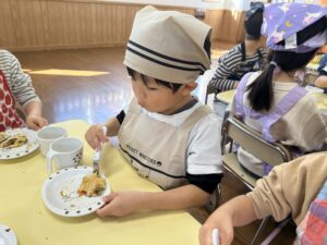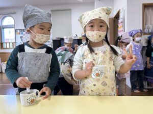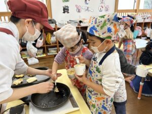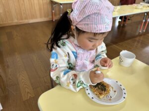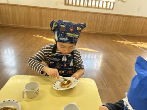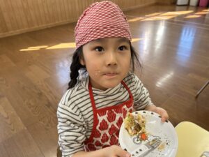 きりん組での最後のクッキング子どもたちも楽しんで行う事が出来たので良かったです!最初から最後まで作るという作業も楽しく行って美味しく食べる事が出来ました✨