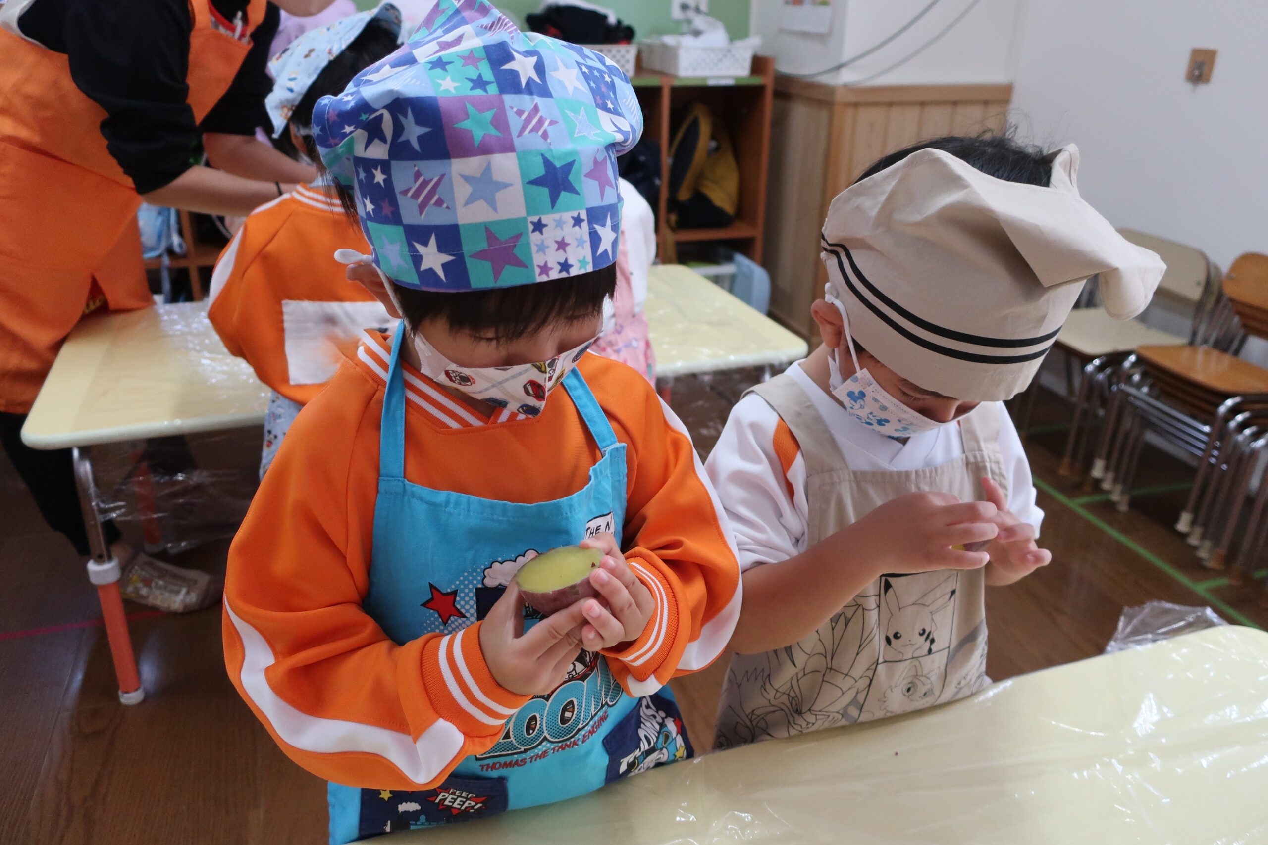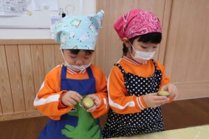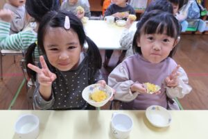 自分たちで掘ったお芋を使ってクッキングをする経験を通して、食への興味・関心がさらに高まったと思います😊