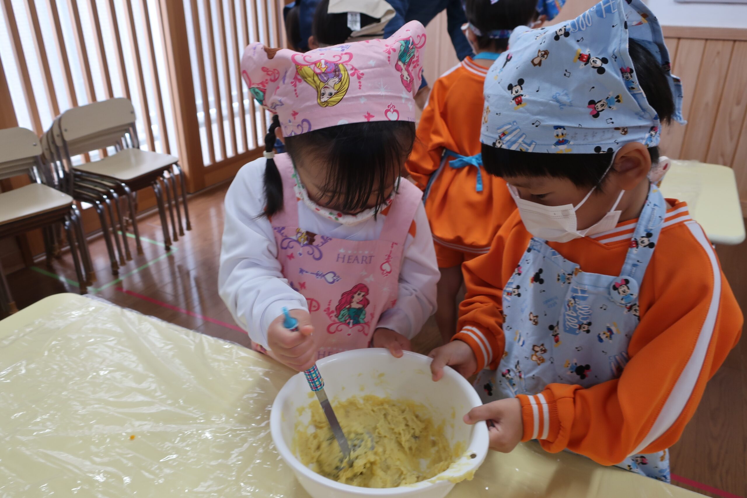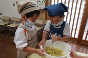 今日はクッキングがあり、子どもたちが掘ってきた芋を使って“スイートポテト”を作りました🍠✨