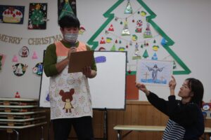 サンタさんは英語しか話せないので「翻訳こんにゃく」を使って話をしてくれました!!