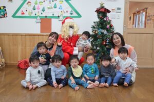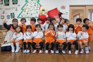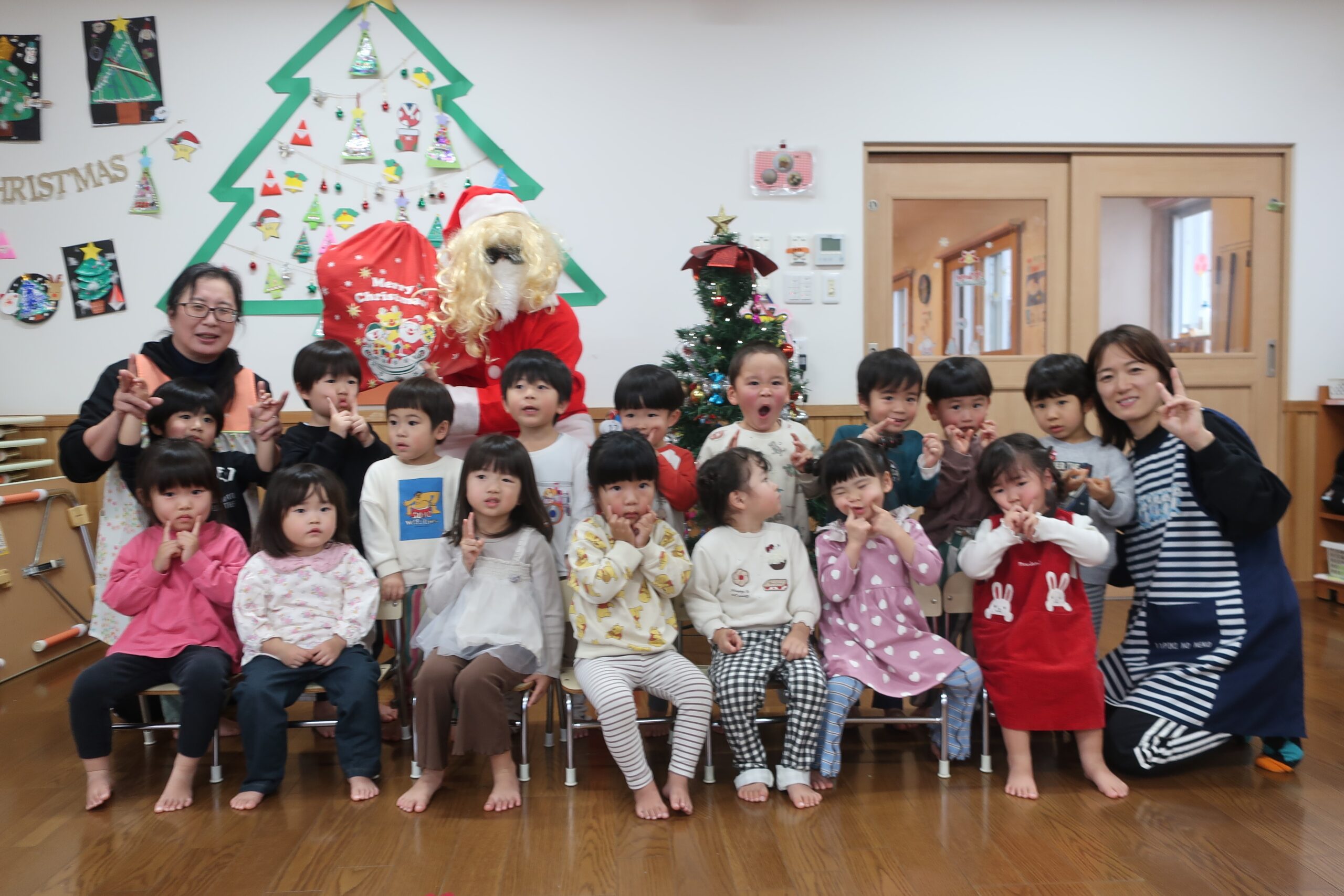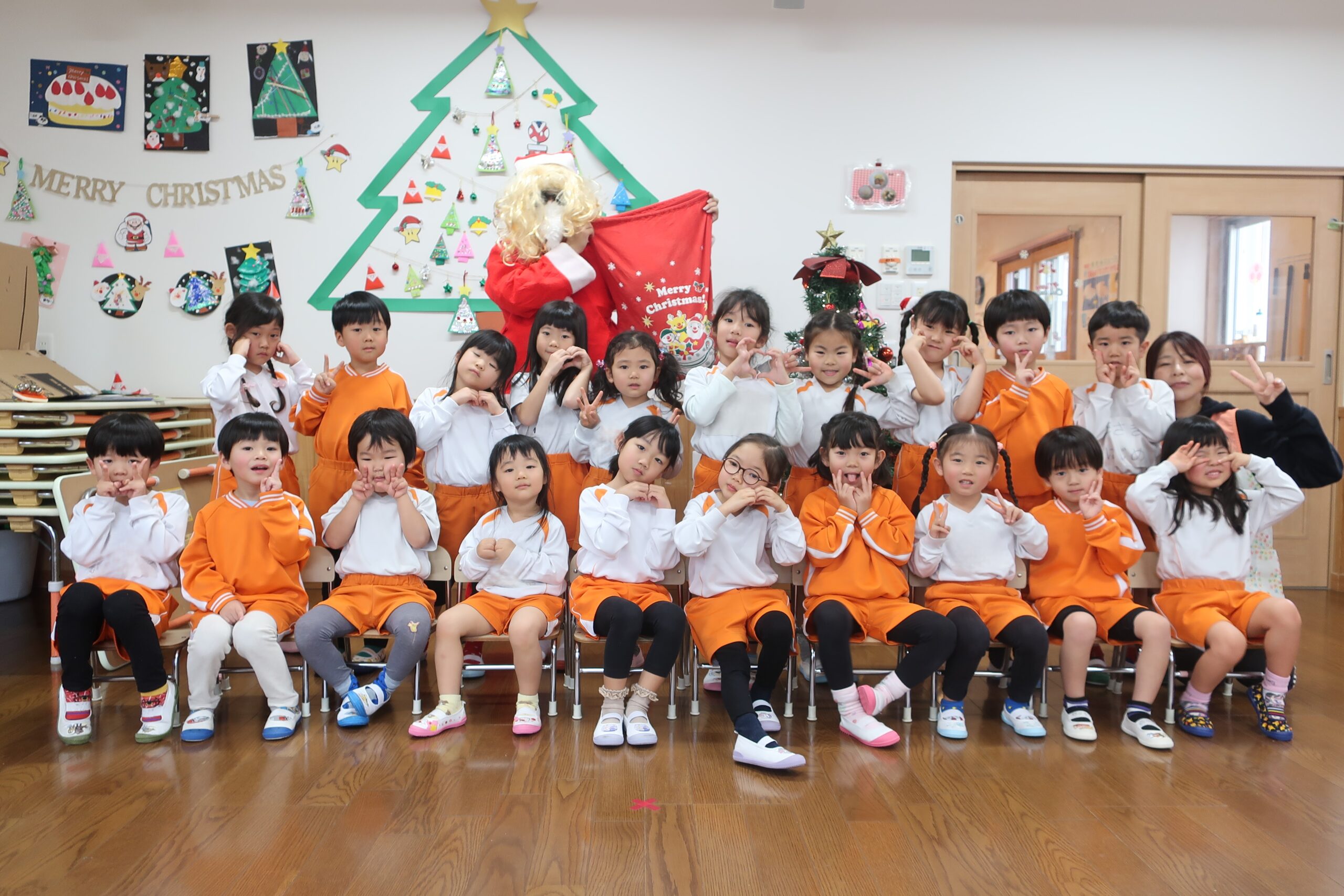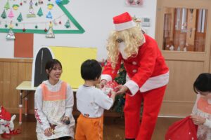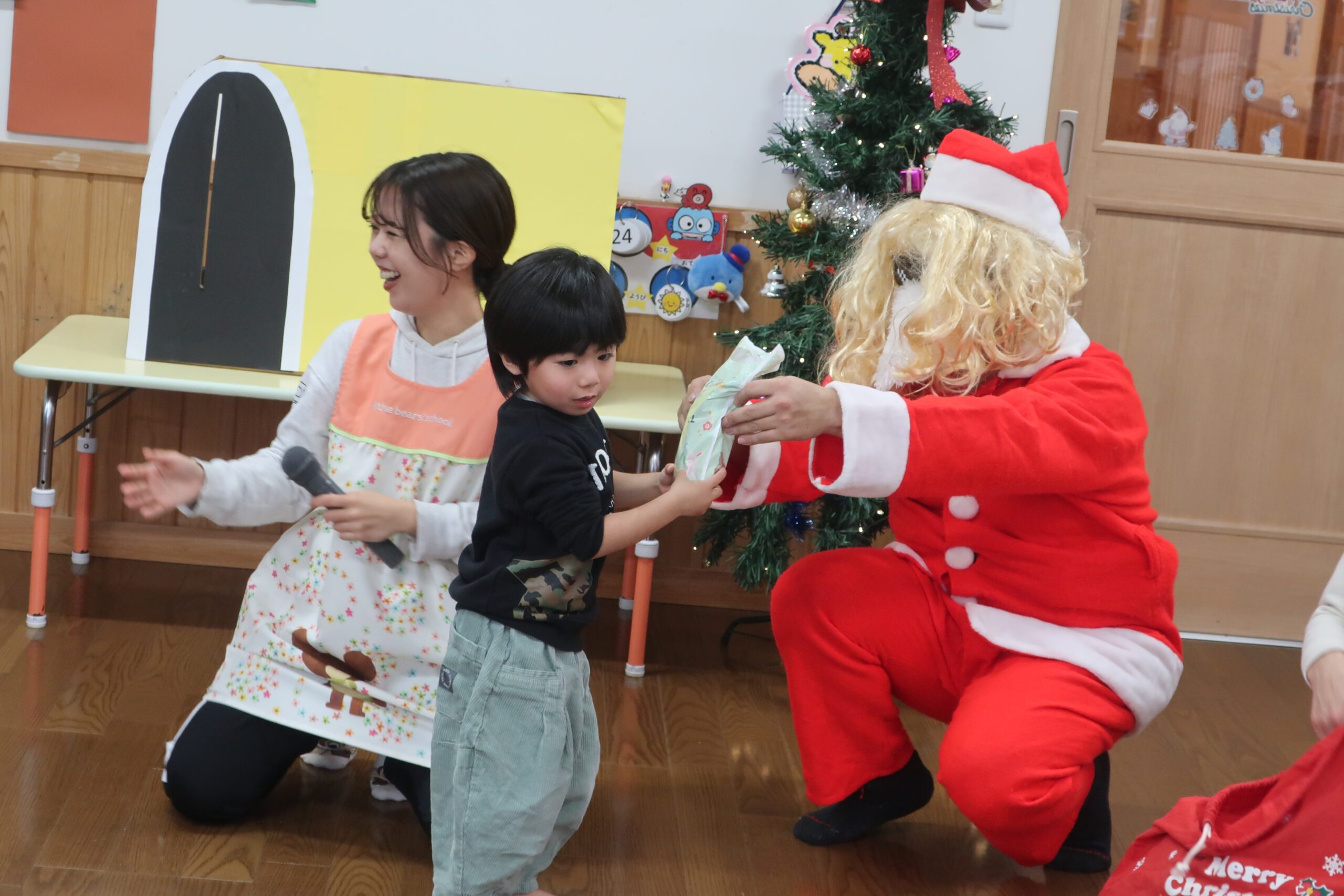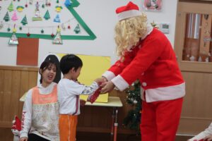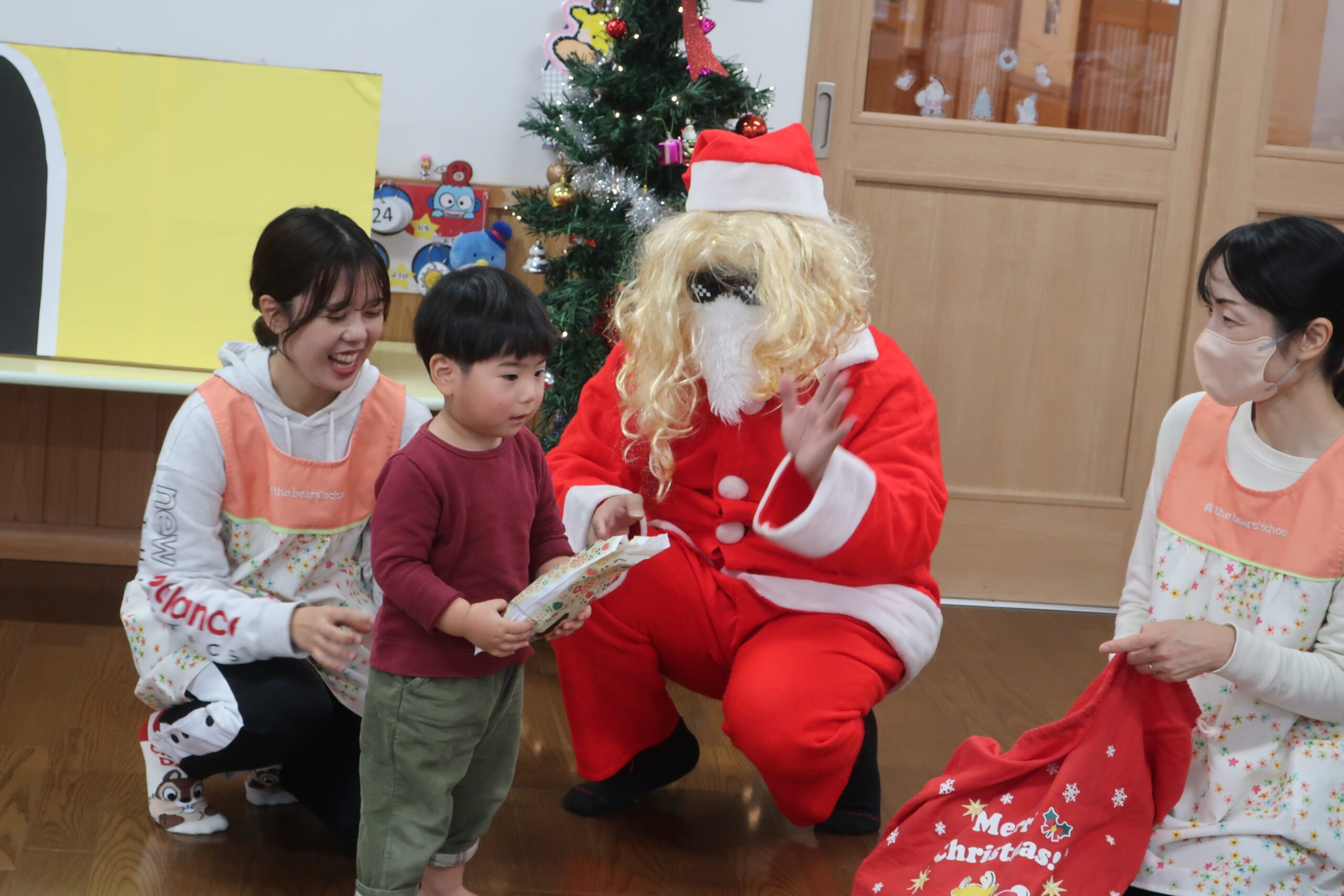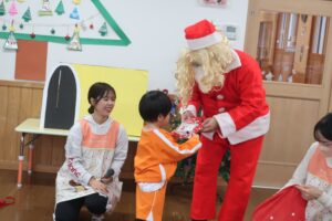 各クラス代表のお友だちが、サンタさんからプレゼント🎁を貰い「メリークリスマス」と合言葉をいって貰いました💖