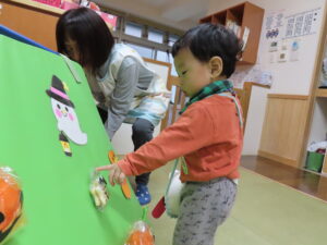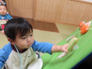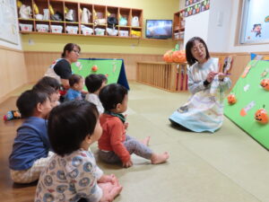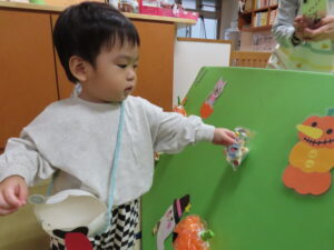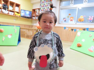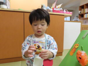ハロウィンには、「収穫」という意味があるため、みんなでおやつを取りに行こう🍭!と気合いを入れて