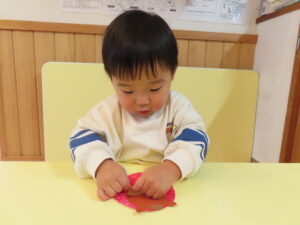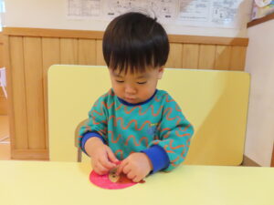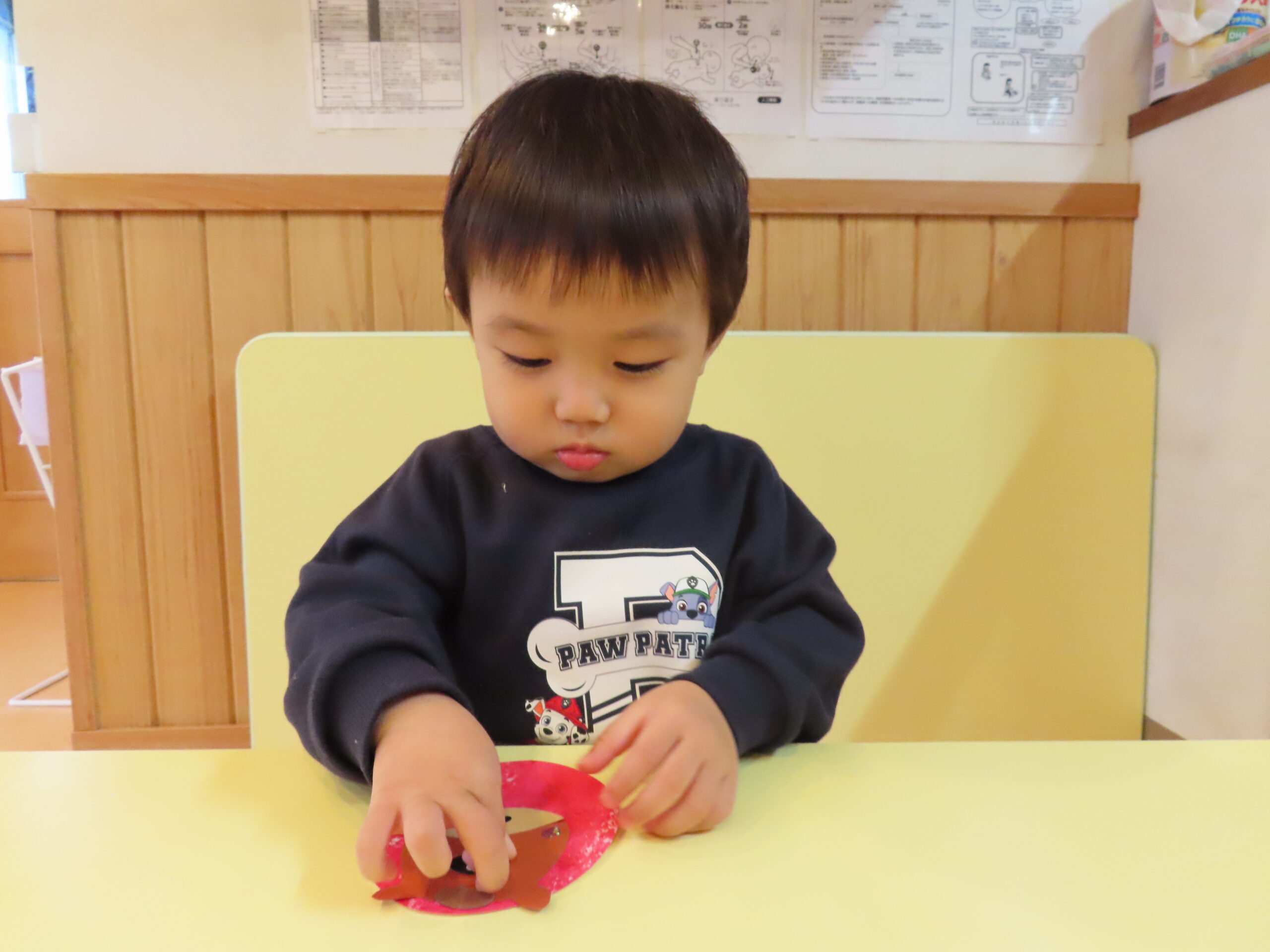 毎月の制作でシール貼りを行っているため、子どもたちはとても上手に