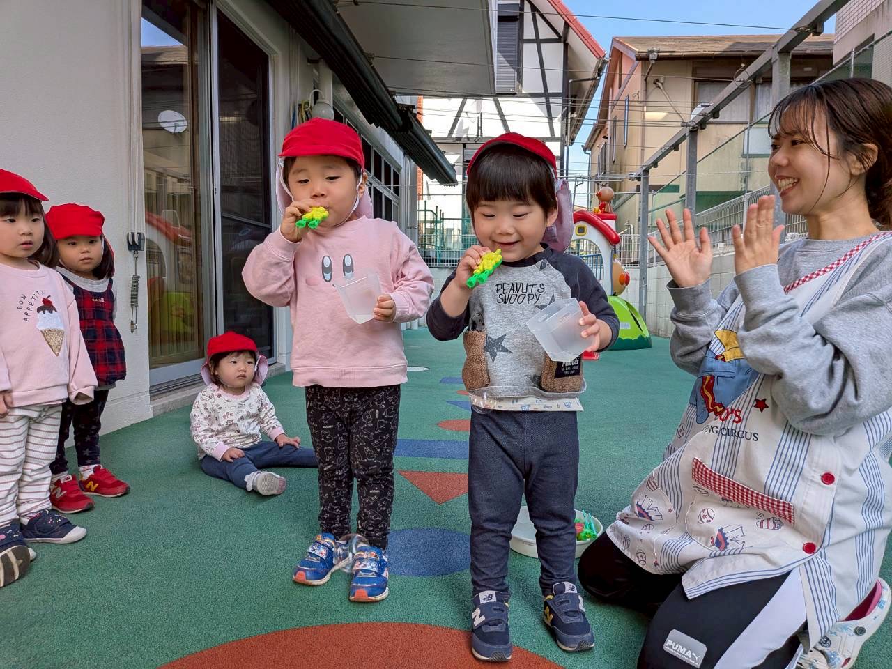 初めてのしゃぼん玉🌈こあら組🐨1歳児