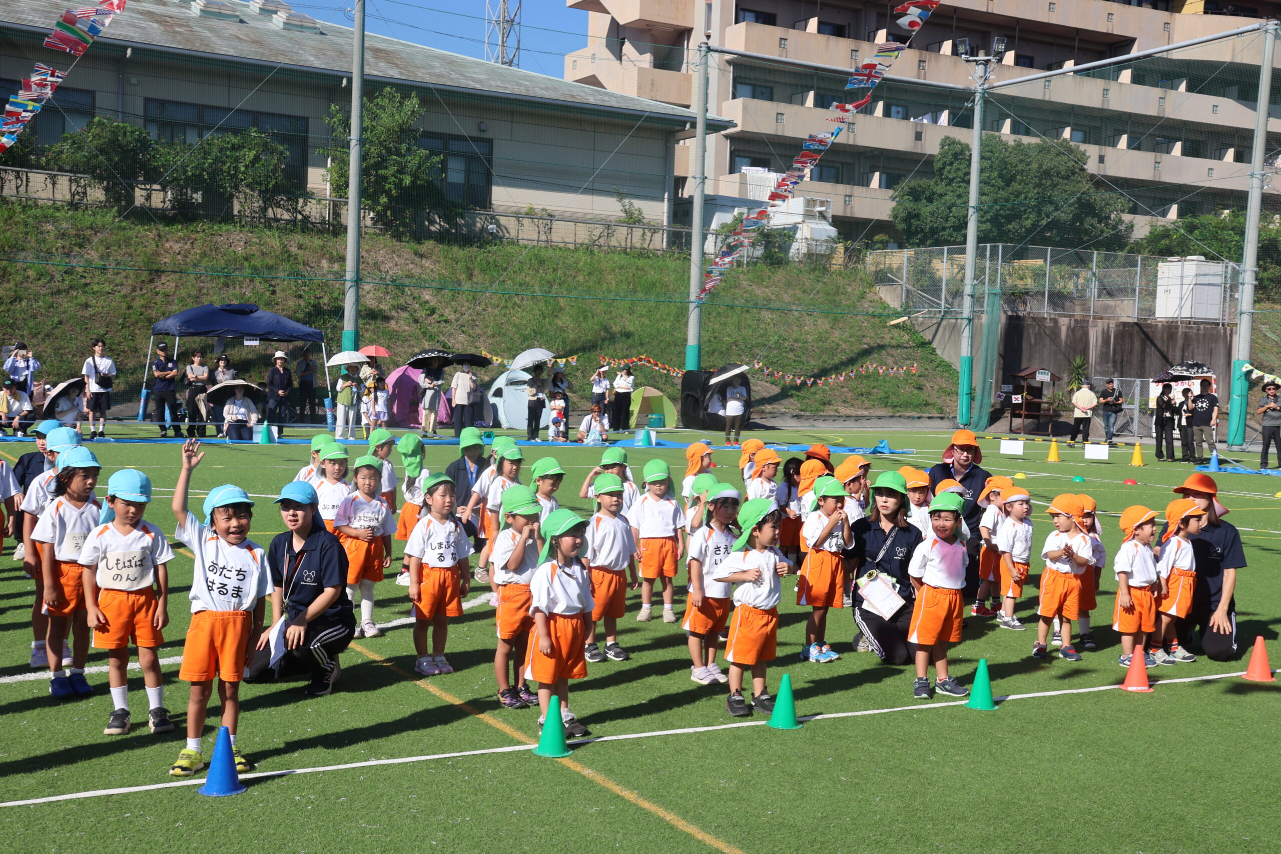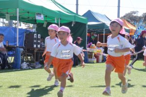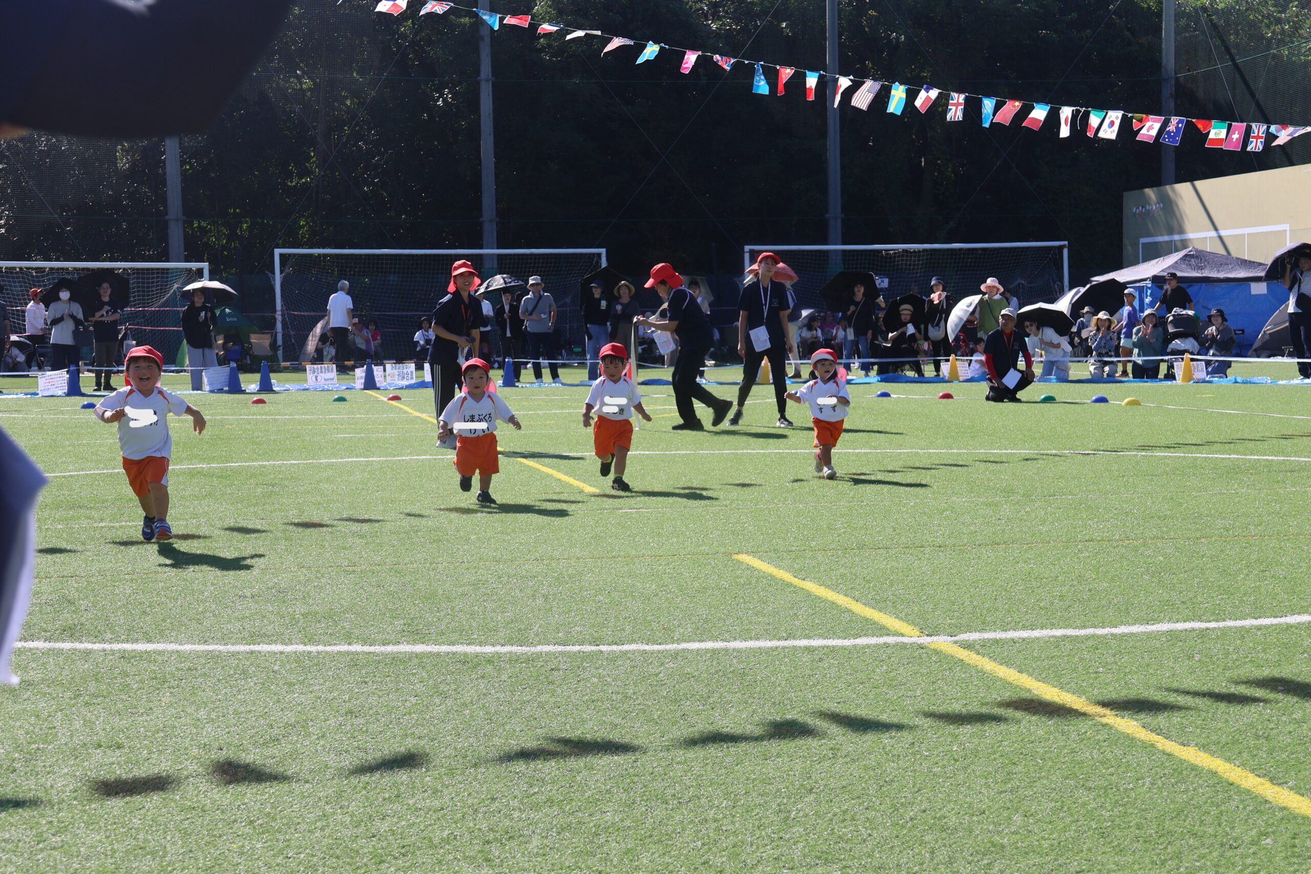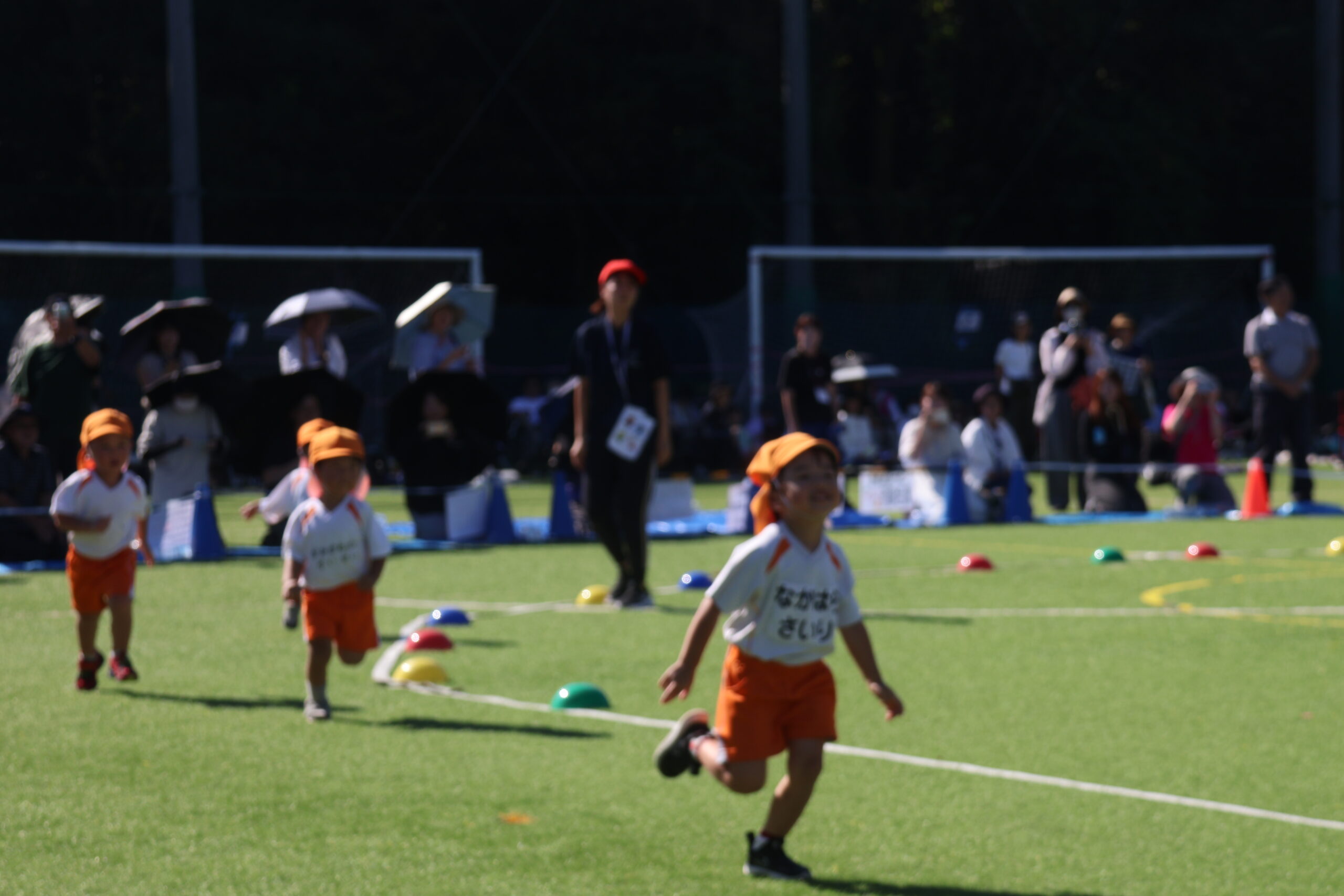 4歳児きりん組のかけっこです。走るフォームも力強くなりました。