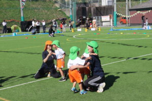 りす、きりんの合同チームとぞう組,大接戦でした。保護者参加の競技も一体感があってとても楽しいでした。おとうさん,おかあさん方お疲れ様でした。