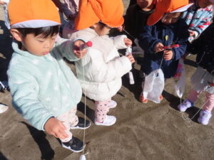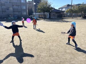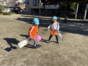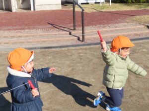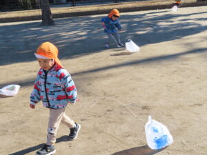 また、異年齢での関わりを楽しみながら、戸外遊びを楽しみたいと思います。