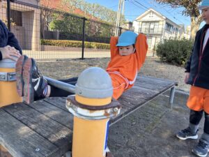 健康遊具で腹筋をするお友だち😊「筋肉ついたかな~」と言っていましたよ(笑)