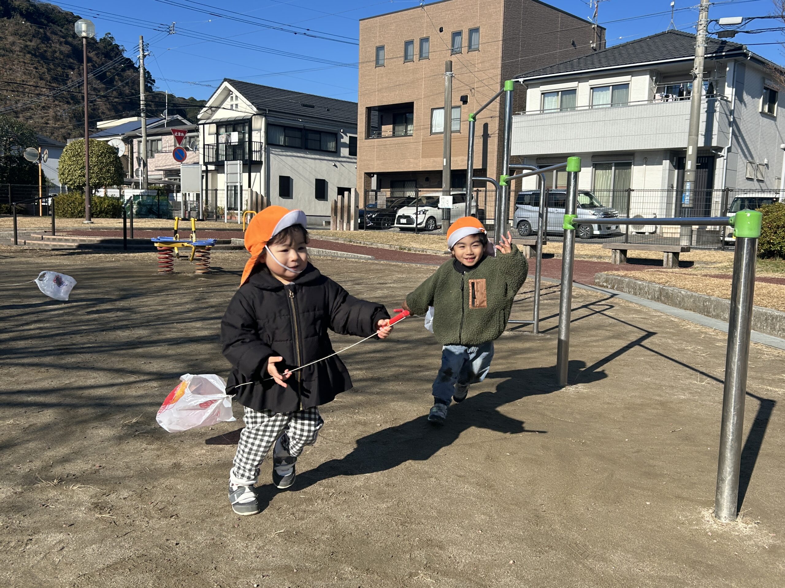 また、異年齢での関わりを楽しみながら、戸外遊びを楽しみたいと思います。