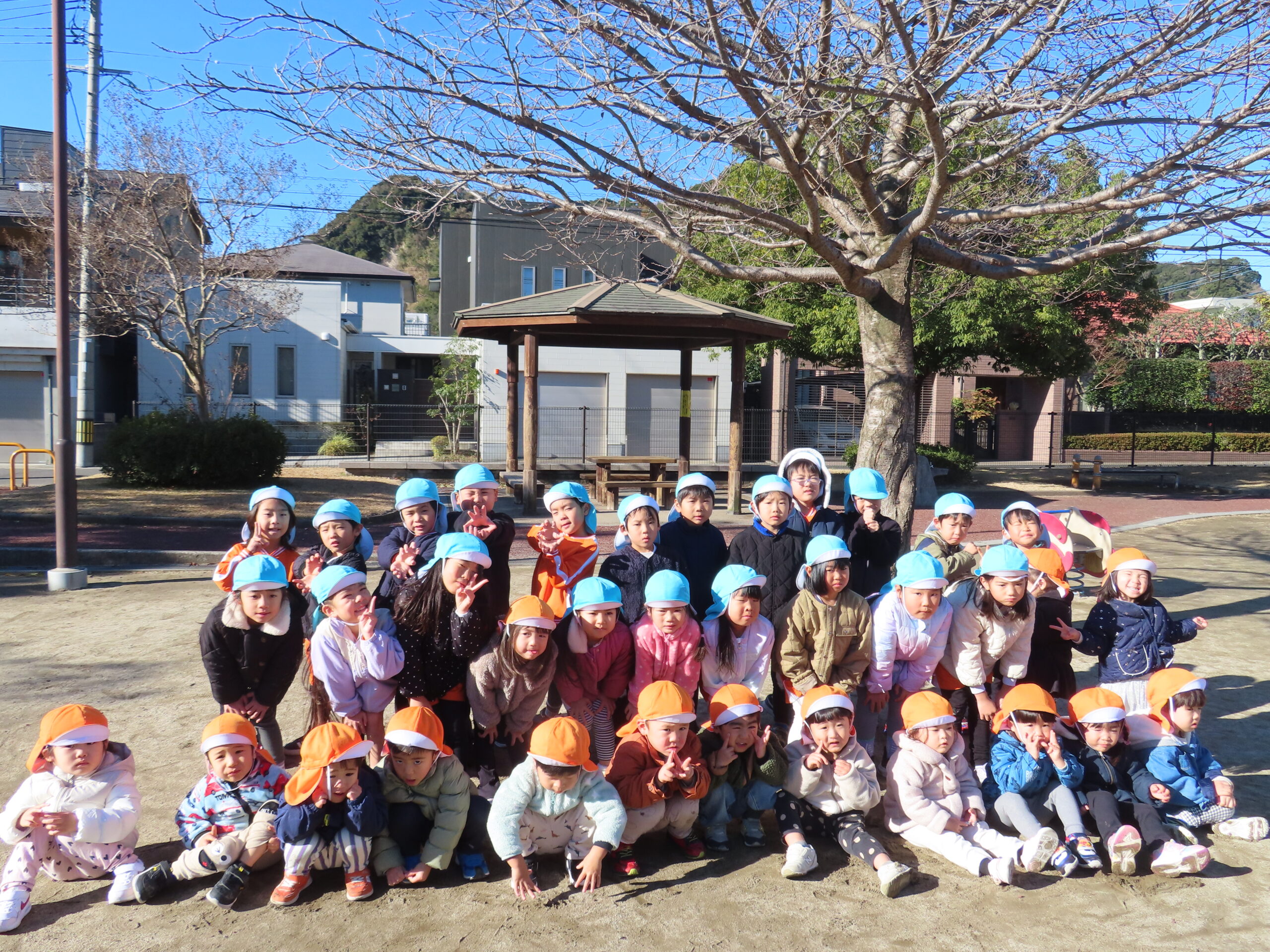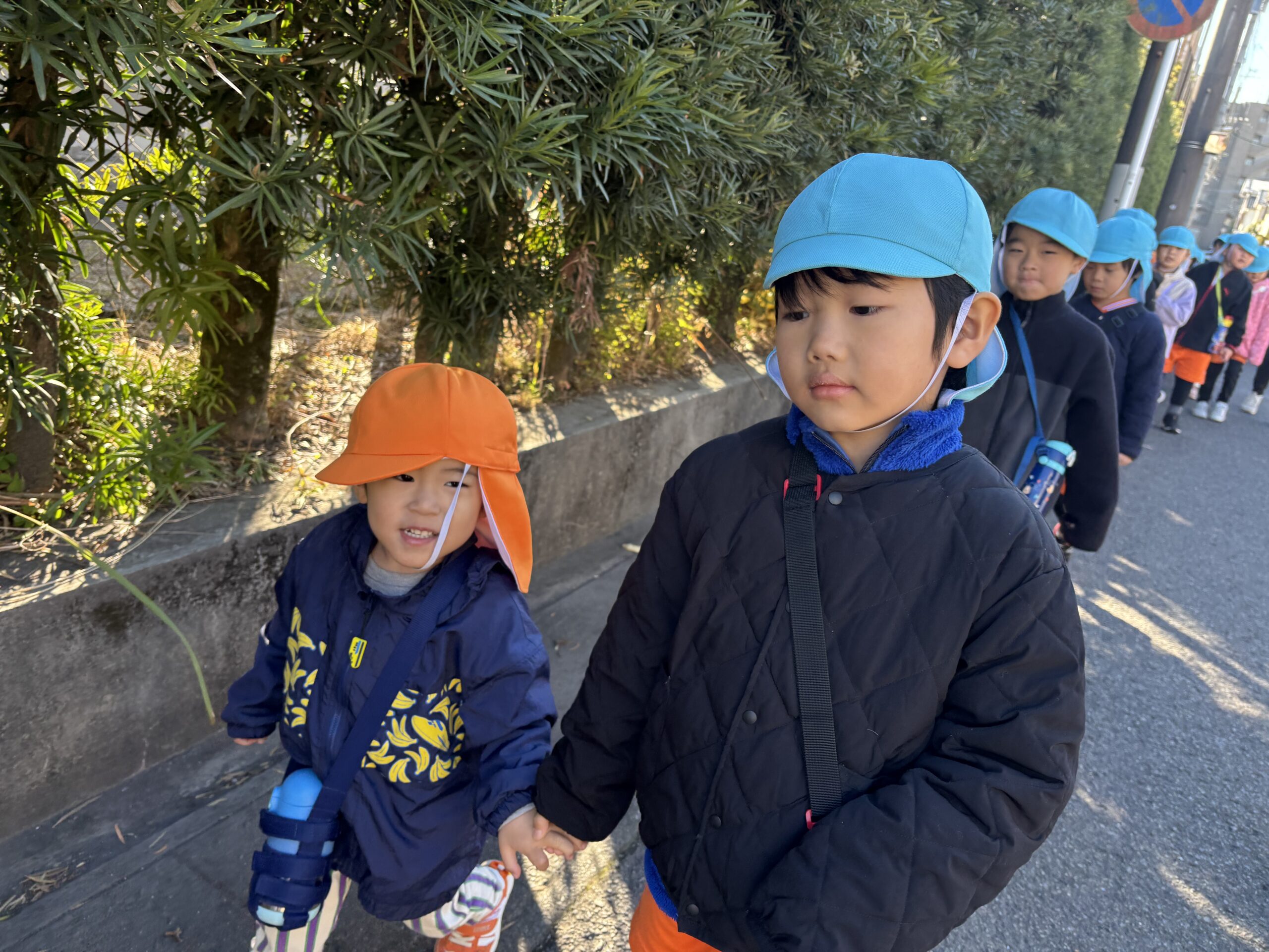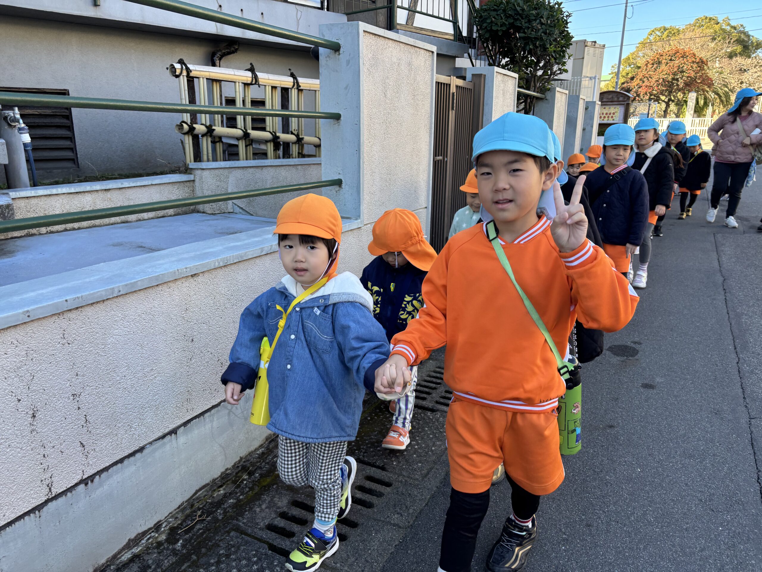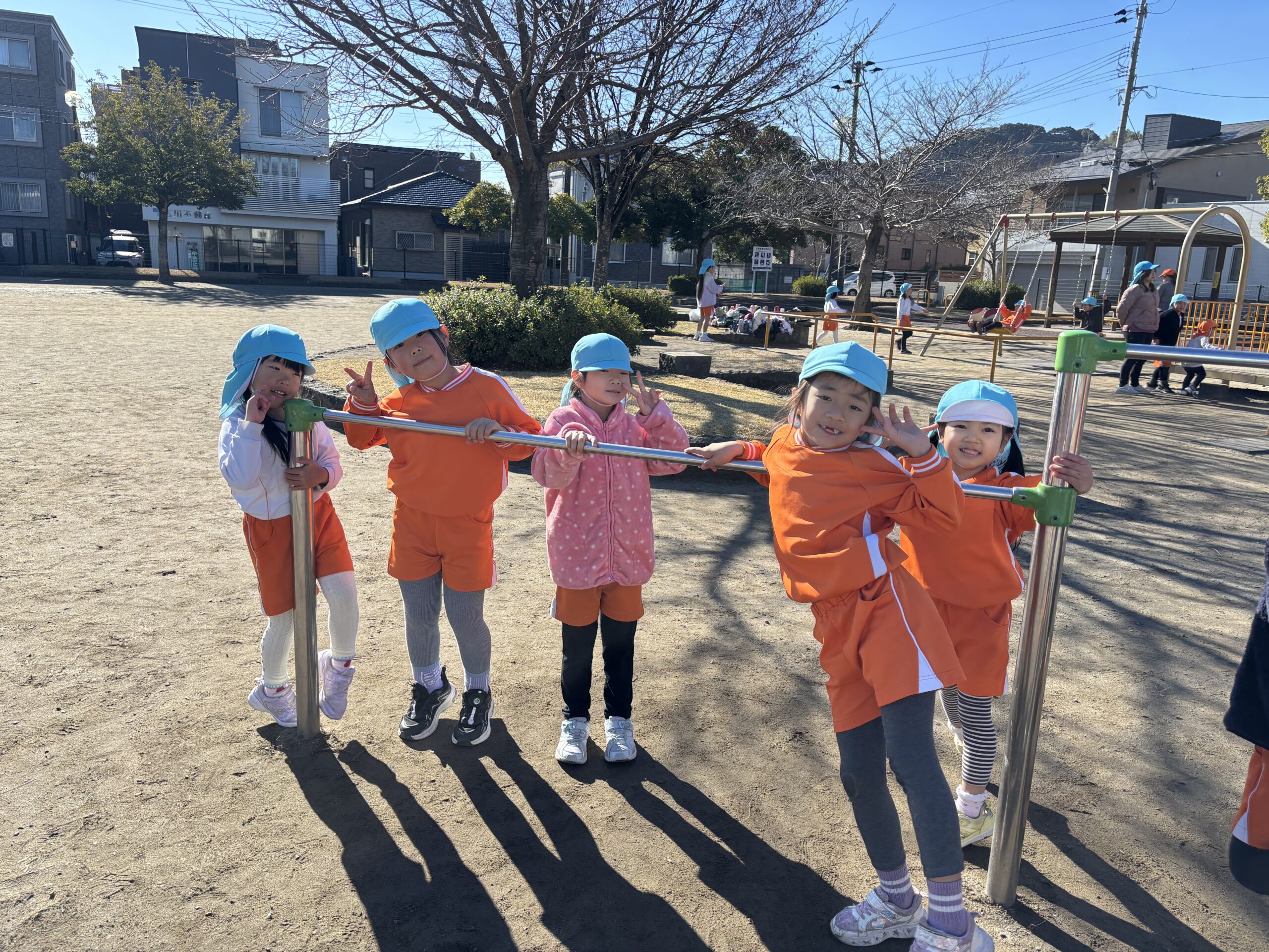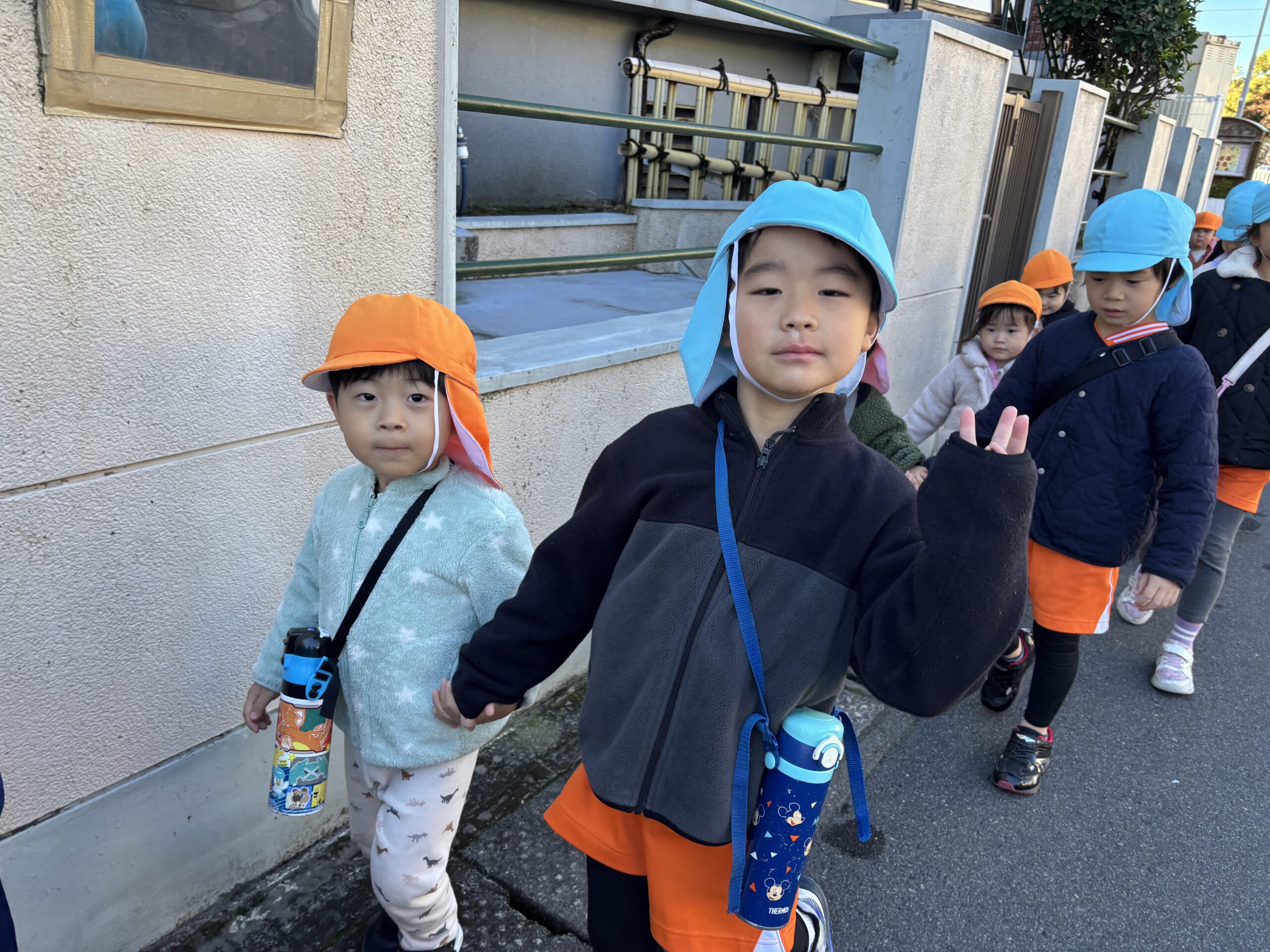 そして、今日はぞう組とりす組で薬師公園に園外保育に行きました。