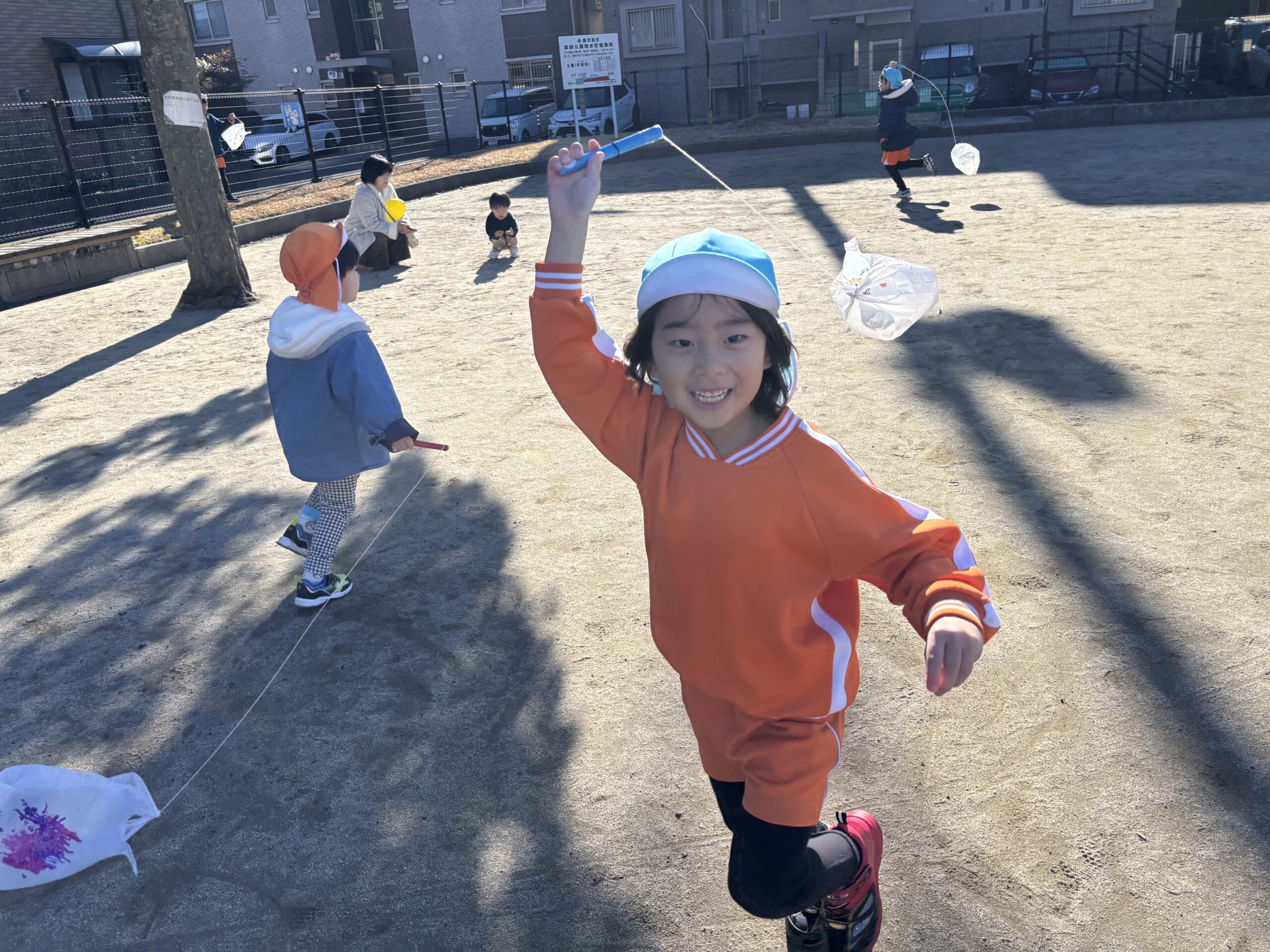 凧が上がるまで一生懸命に走りで出す子どもたちです😊