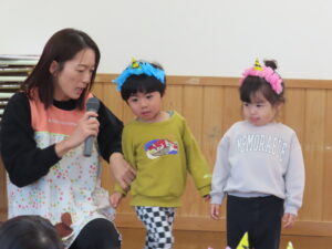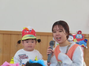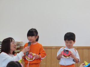 お話を聞いた後は、パネルシアターを見て、『まめまき』の歌を歌いました♪