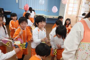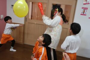 豆まき👹🫘“以上児”🐼🦒🐘 2026年2月3日 最終更新日時 : 2026年2月3日 w-kchuo 豆まき会が終わった後は、以上児みんなで“せつぶんセブン”の絵本を見ました👀📚 その後はぞう組さんとぱんだ組さんに行って豆まきスタートです🫘 風船鬼や先生鬼に向かって“おには そと~!”と元気いっぱい豆を投げる子どもたちでした👦🏻👧🏻✨ 最後は各クラス集合写真を撮りました📷✨ ぱんだ組🐼 きりん組🦒 ぞう組🐘 今年も1年もみんなが健康に過ごせますように・・・😌💫