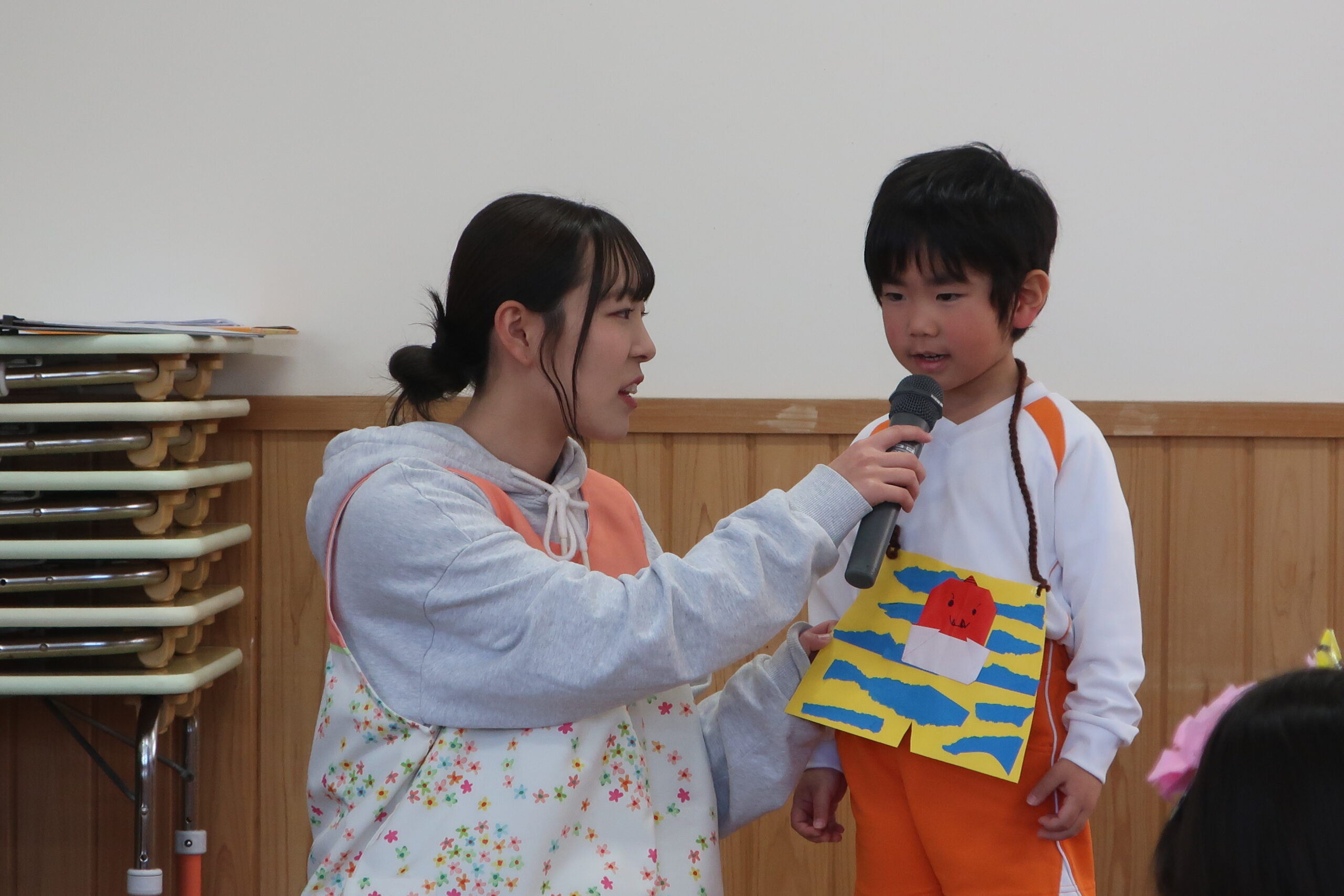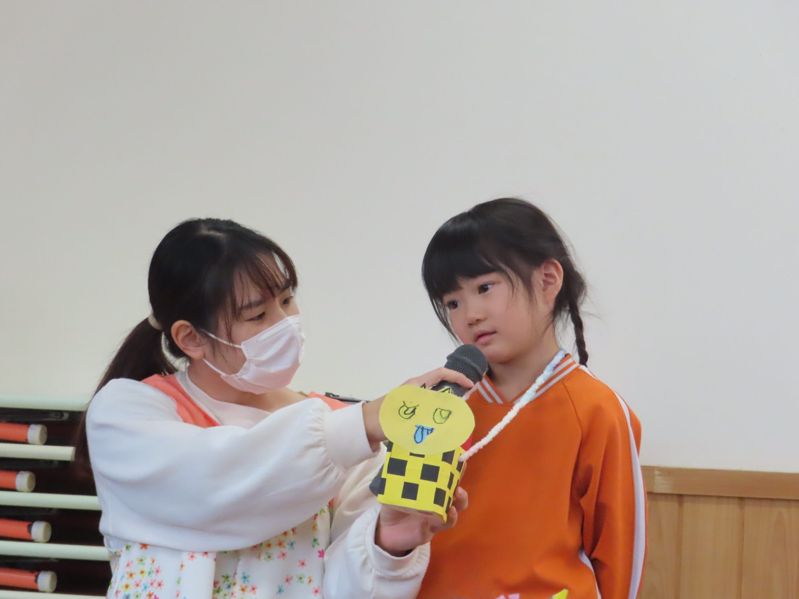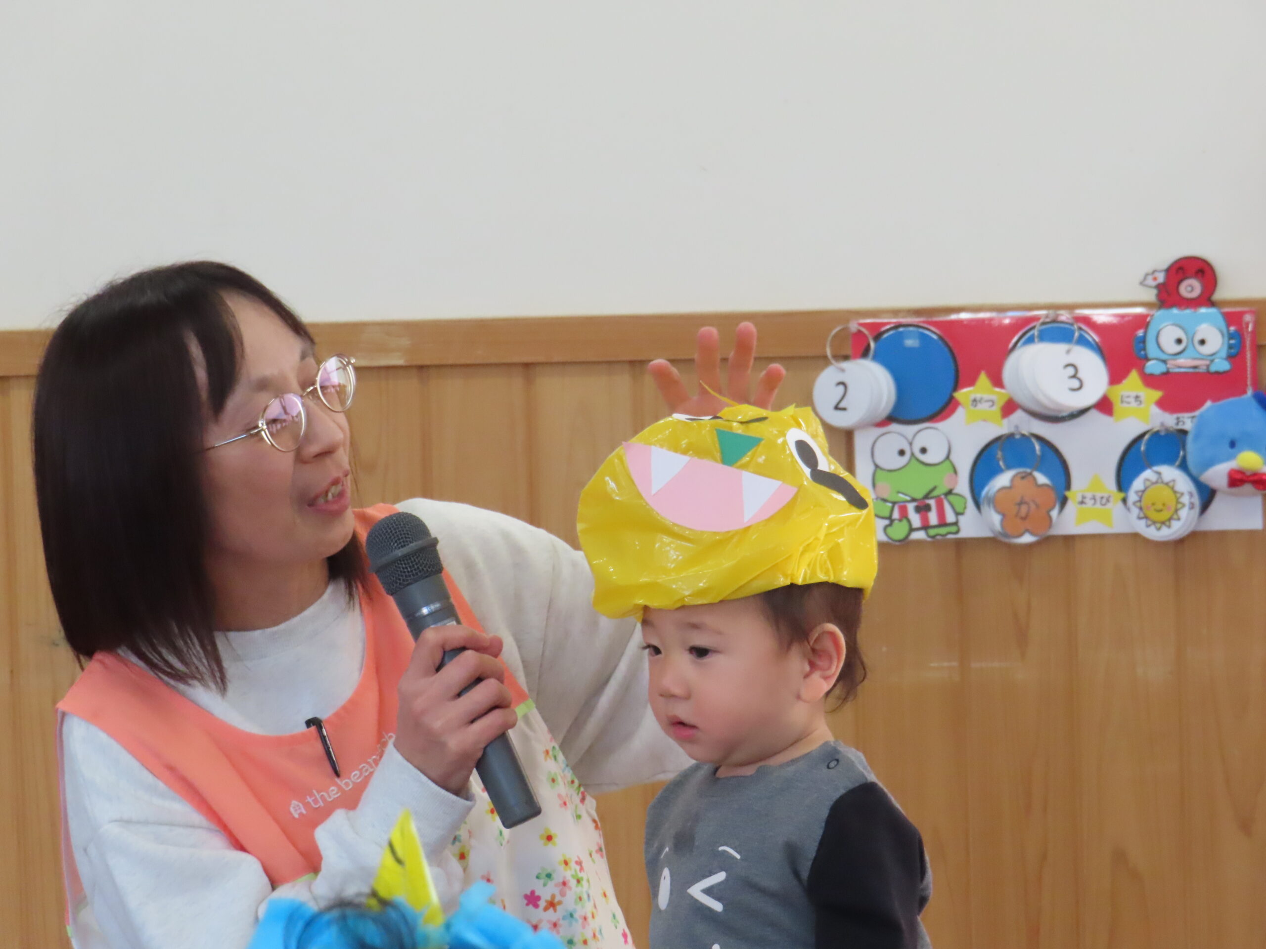 お話を聞いた後は、パネルシアターを見て、『まめまき』の歌を歌いました♪