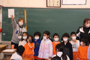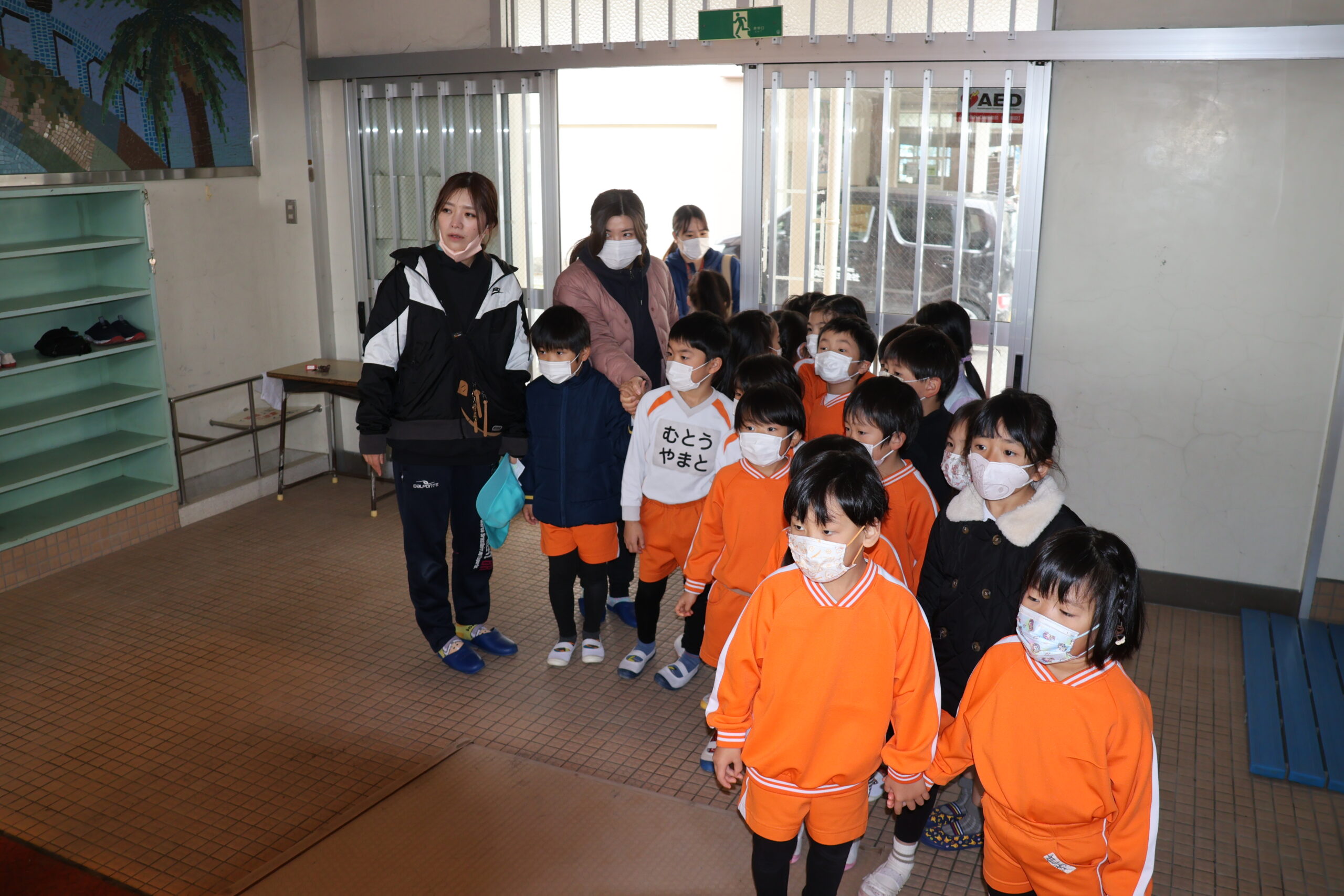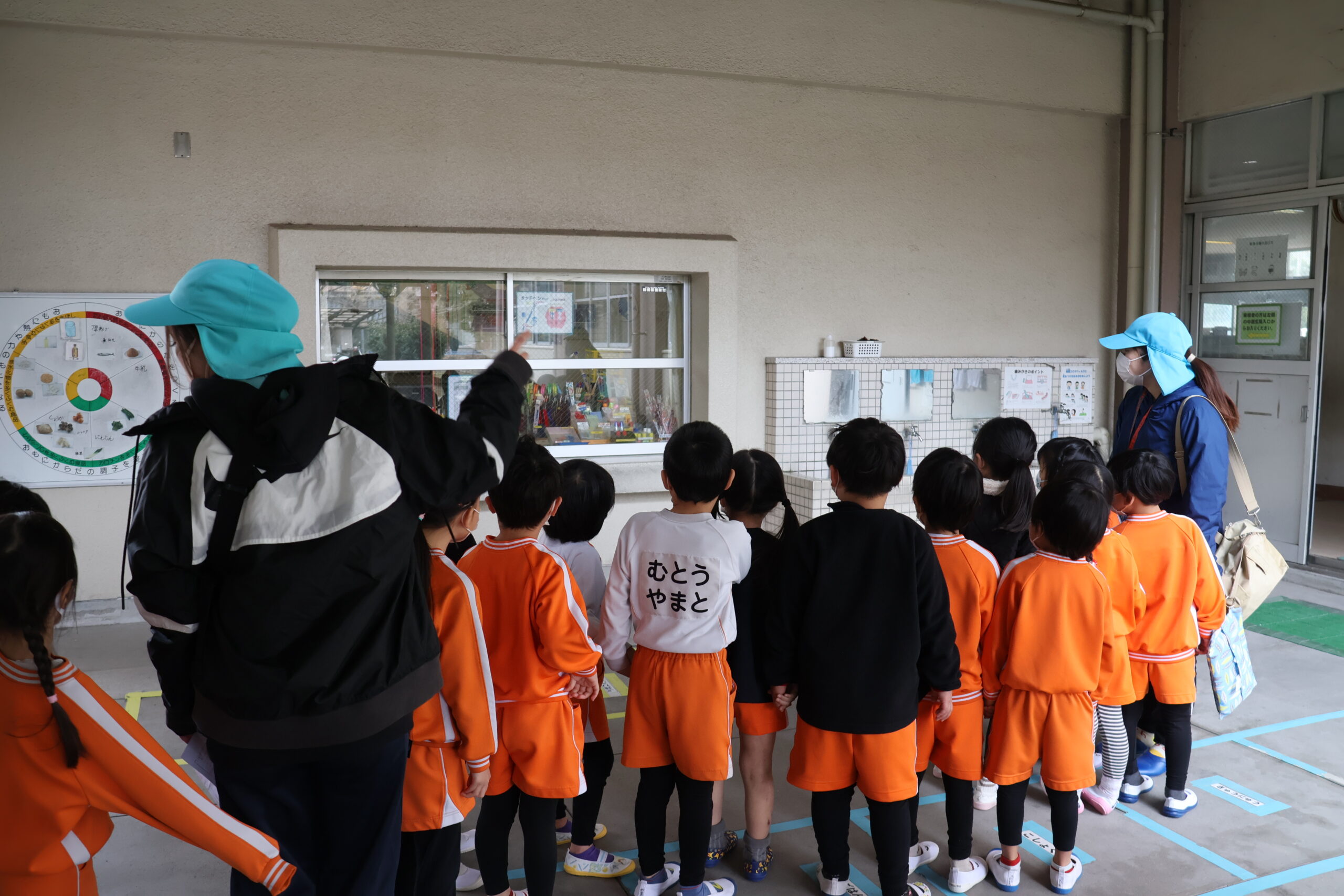 残り1月で卒園する年長ぞう組の子どもたちが小学校との交流にでかけました。少しでも小学校への不安を取り除き,希望をもって入学できるようにするねらいがあります。