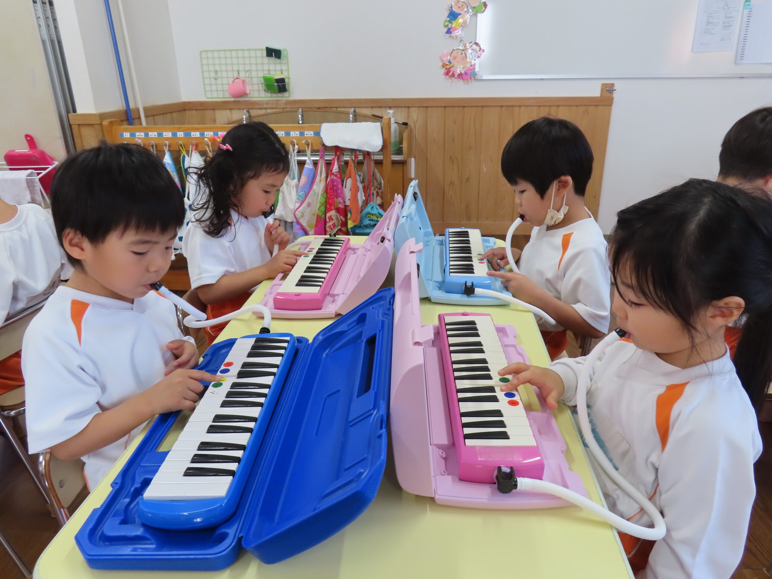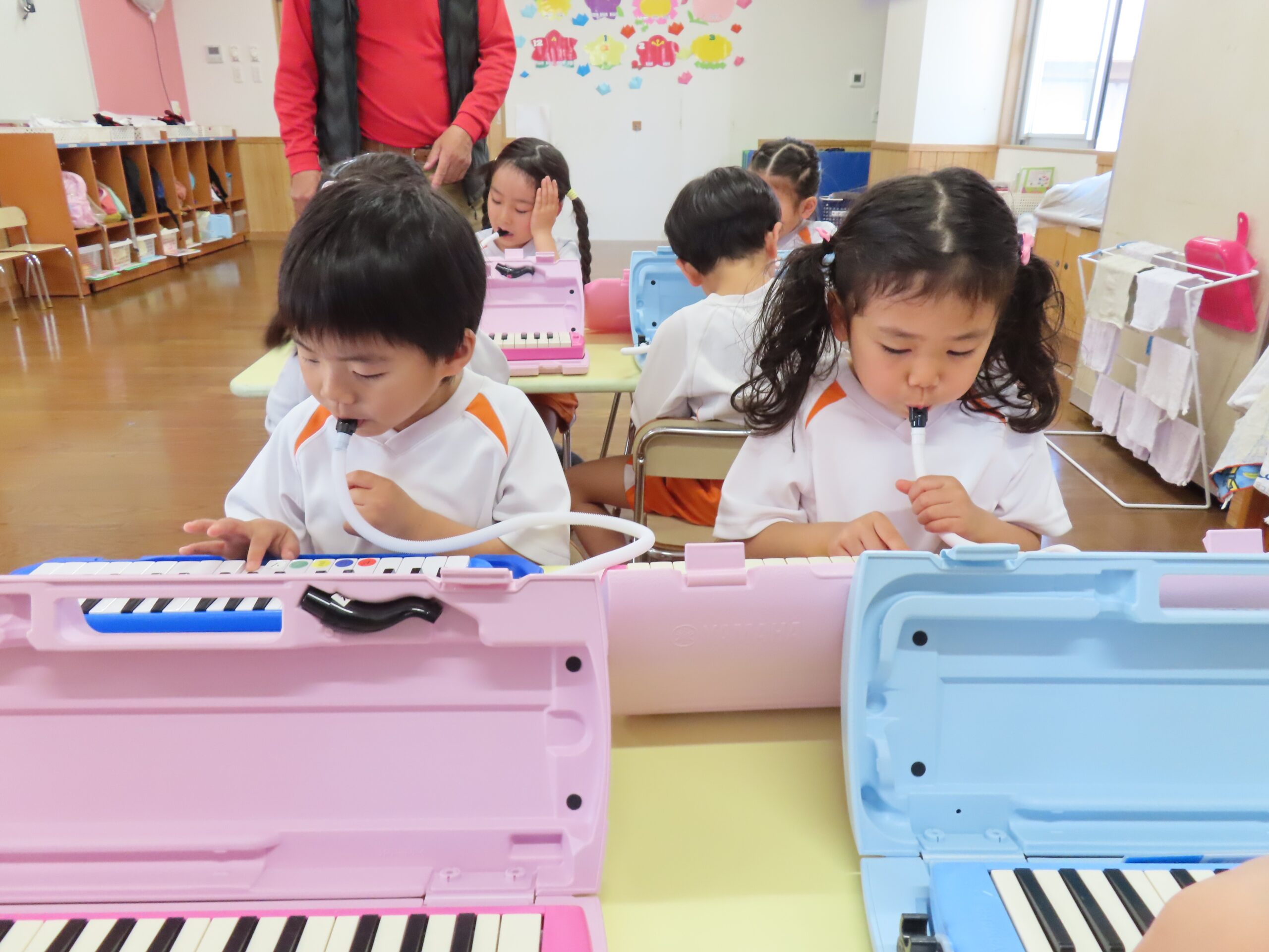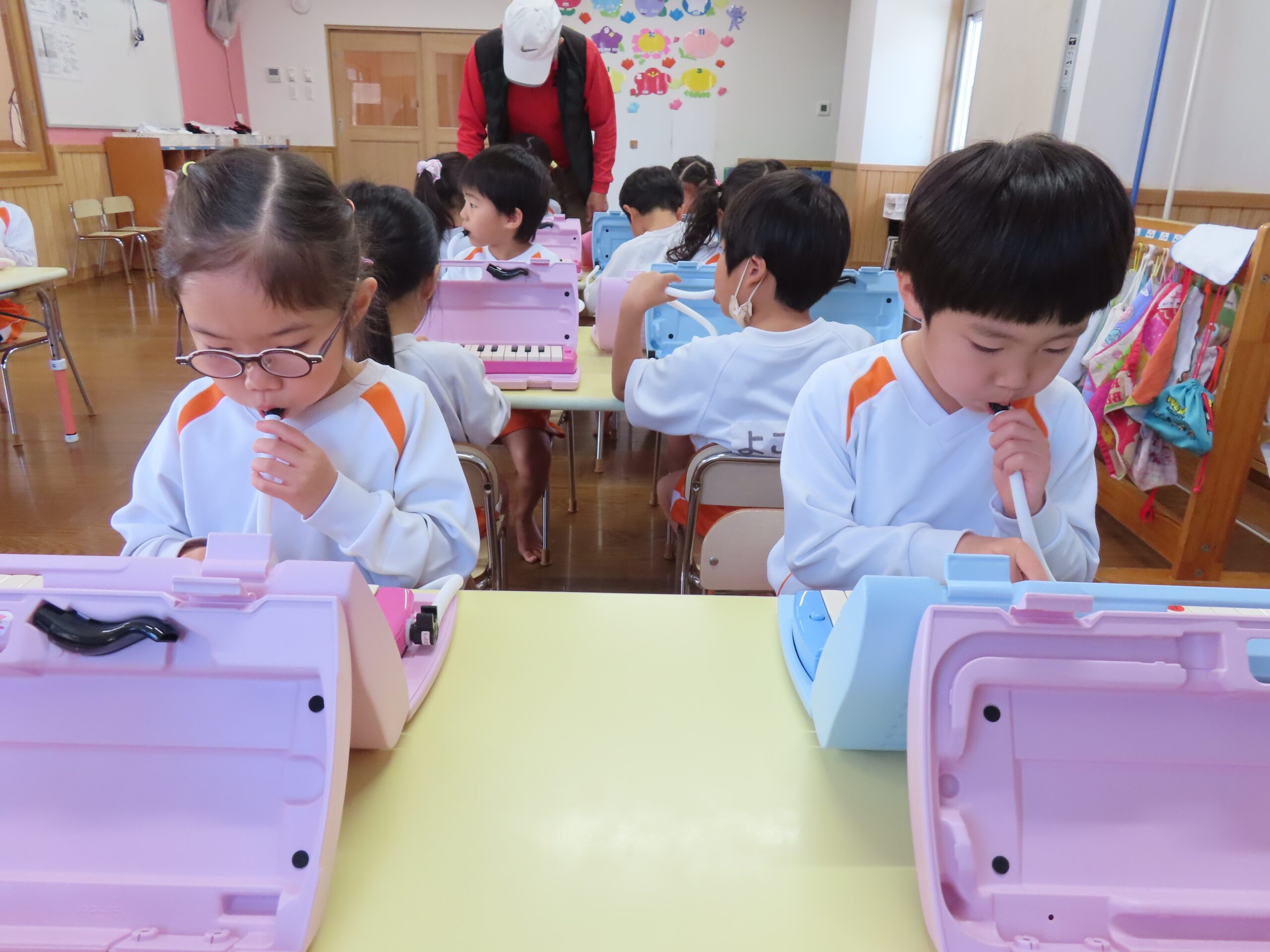 前日に鍵盤ハーモニカをすることを伝えていたので、子どもたちは朝から「鍵盤ハーモニカ楽しみ🎶」や「なに弾くの?」などたくさんの声が聞こえてきましたよ👂