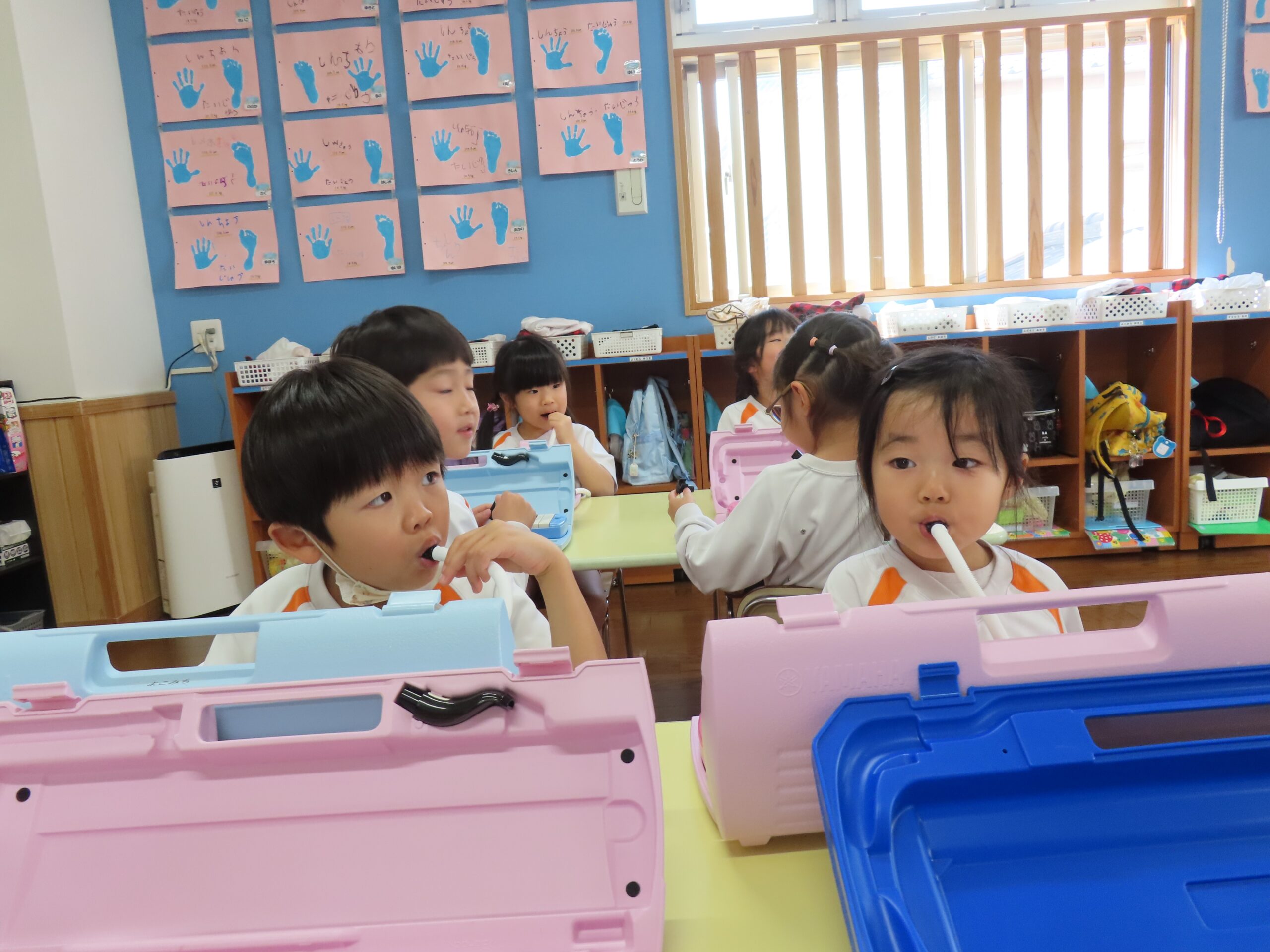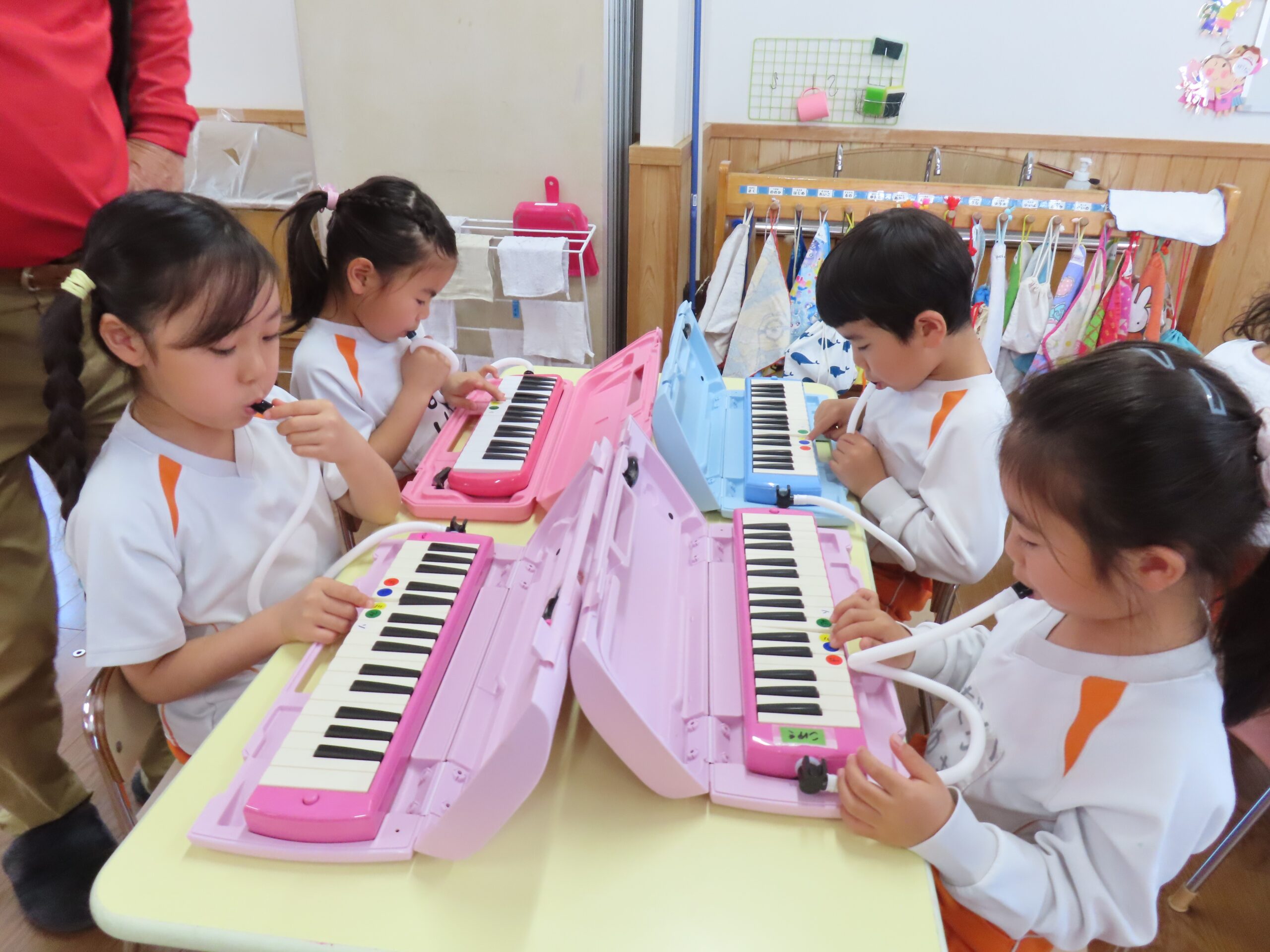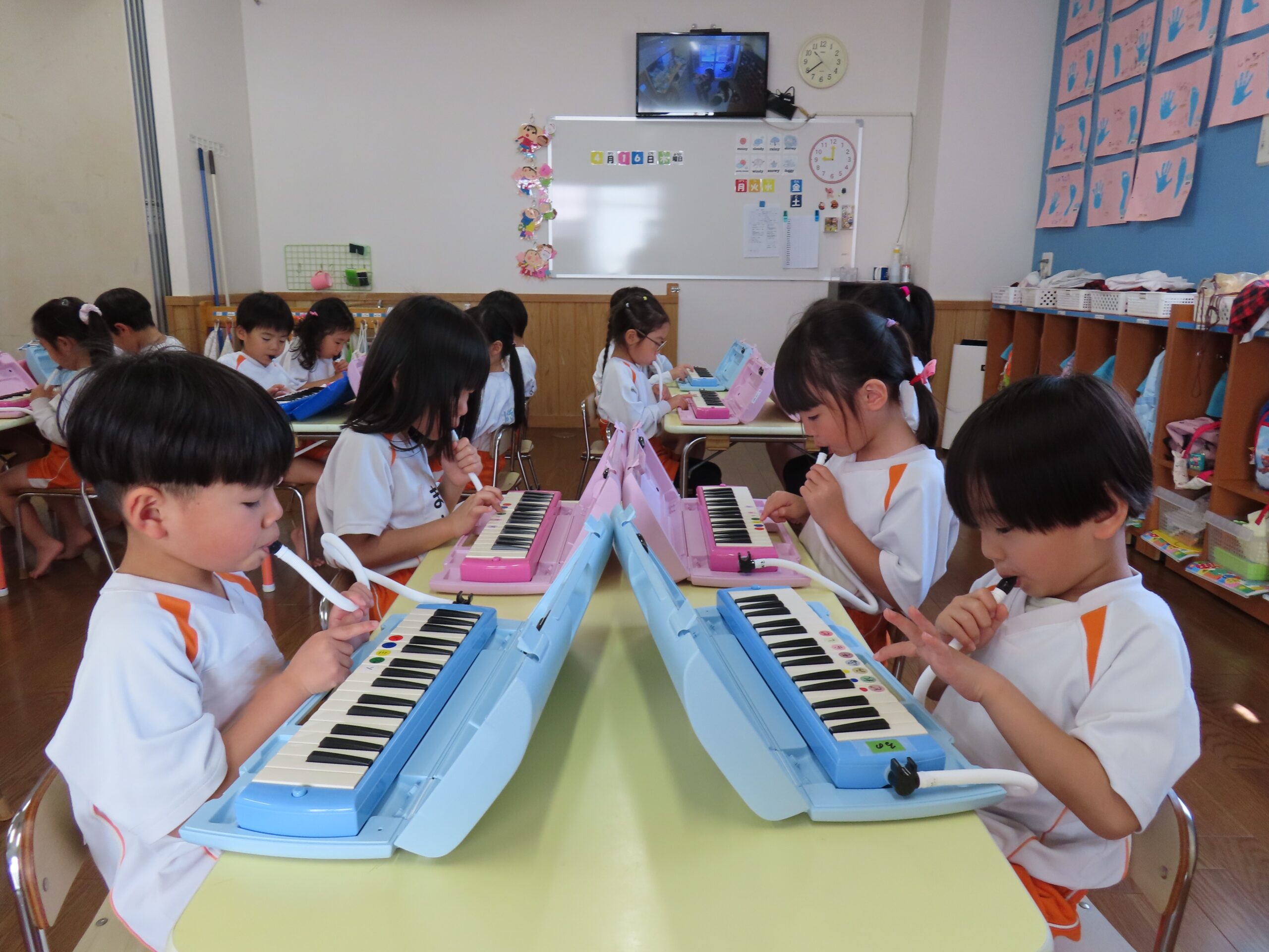前日に鍵盤ハーモニカをすることを伝えていたので、子どもたちは朝から「鍵盤ハーモニカ楽しみ🎶」や「なに弾くの?」などたくさんの声が聞こえてきましたよ👂