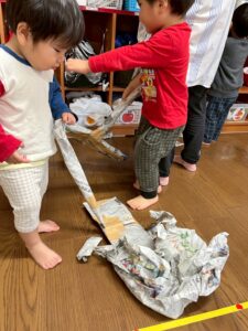 木曜日に、❝新聞紙遊び❞をしてみました😉✨