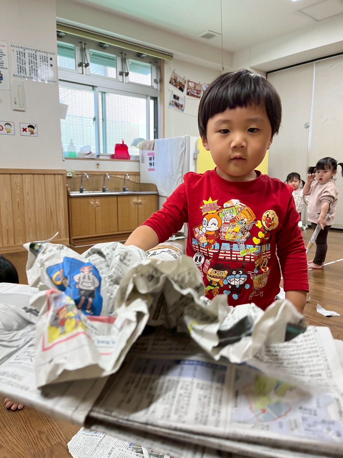 木曜日に、❝新聞紙遊び❞をしてみました😉✨