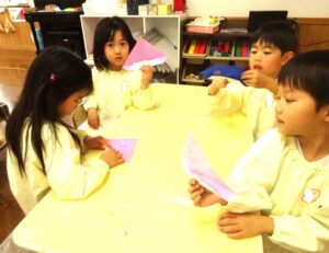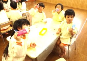 これからも、様々な素材や遊びを楽しみながら、豊かな経験につながる活動を取り入れていきたいと思います。