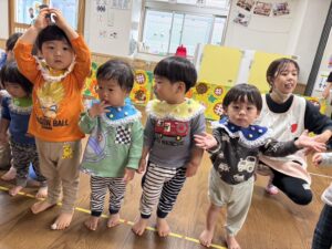 💖明日はついに発表会💖ひよこ組0歳、こあら組1歳、りす組2歳 2025年12月19日 最終更新日時 : 2025年12月19日 w-kchuo 明日は、いよいよわくわく発表会があります! 今日は、未満児の最後の練習で見せ合いっこをしましたq(≧▽≦q) ひよこ組のピクミン🌸 こあら組のハム太郎🐹 未満児合同のわくわくサンタ!🎅 りす組のしなこちゃん🦷✨ みんなの前で踊ったため、少し緊張しているお友だちもいましたが 最後まで一生懸命頑張っていましたよ(^^♪ 明日は、これまでたくさん練習してきた成果を発揮できるように みんなで発表会を楽しみながら頑張りたいと思います!🤩 IMG_5492[2]
