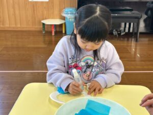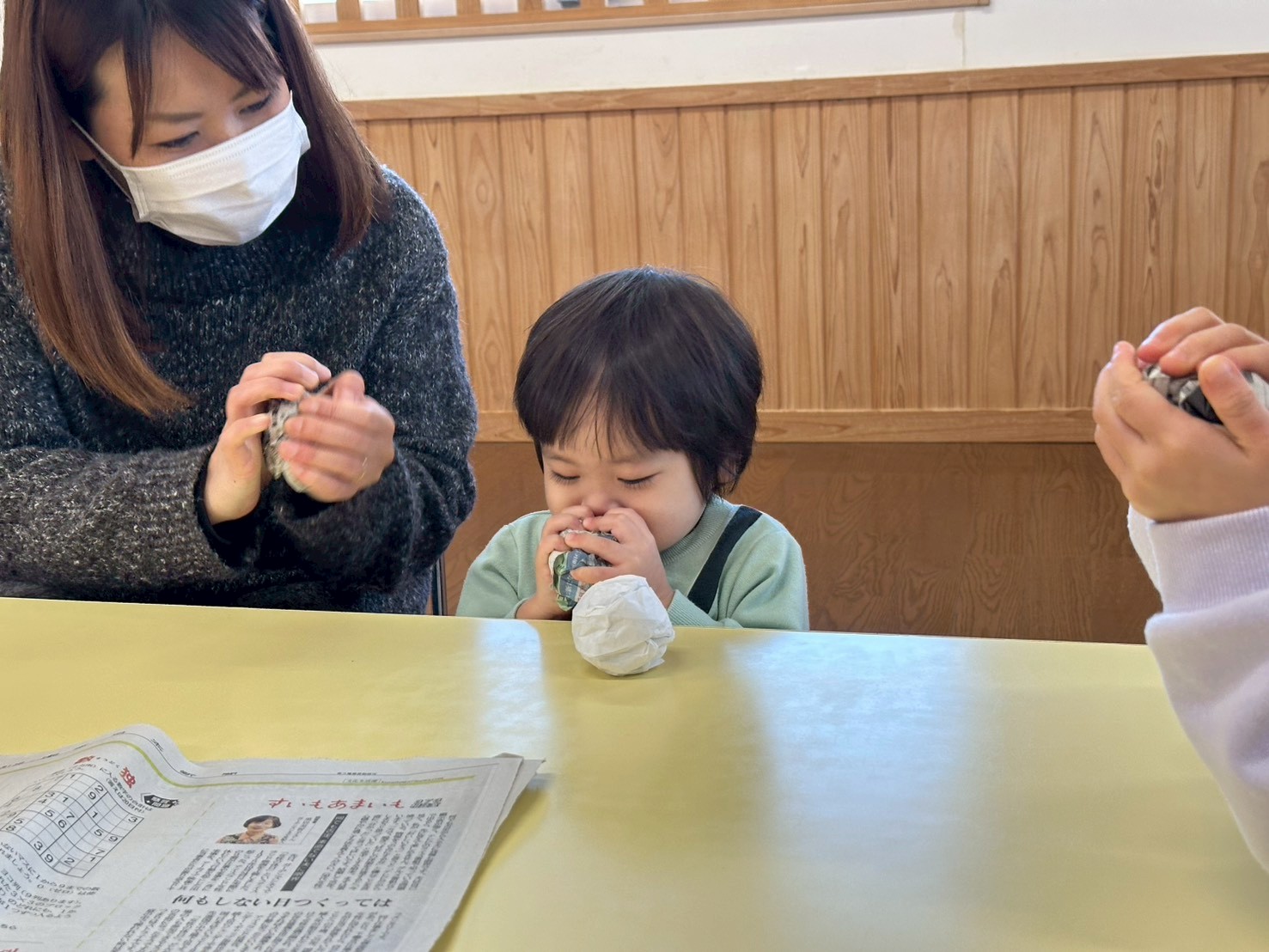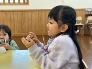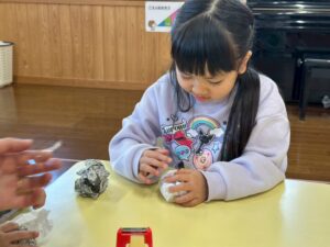 指に力を入れて、ギューと丸めてボールを作っていました。
