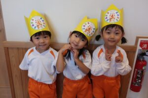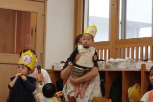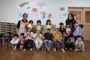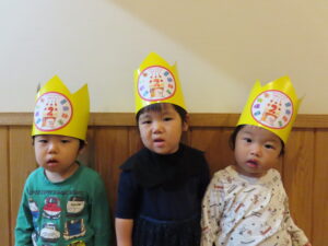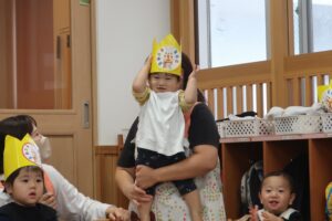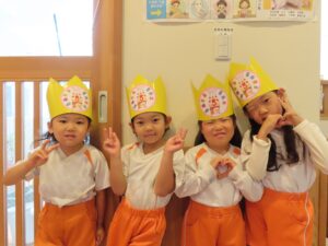 冠をかぶって、にっこり笑顔のお友だちです😊