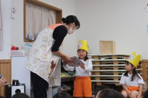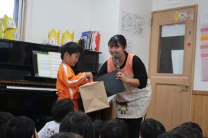 その後は、誕生児のお友だちにくじびきで動物を選んでもらい、