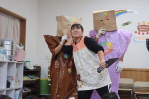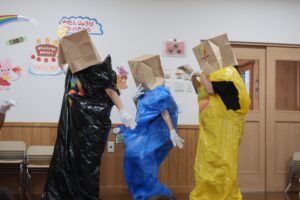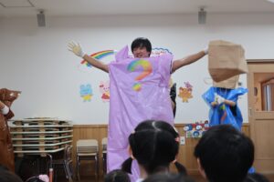 子どもたちは❝誰かな~?❞と不思議そうな顔をしている子や