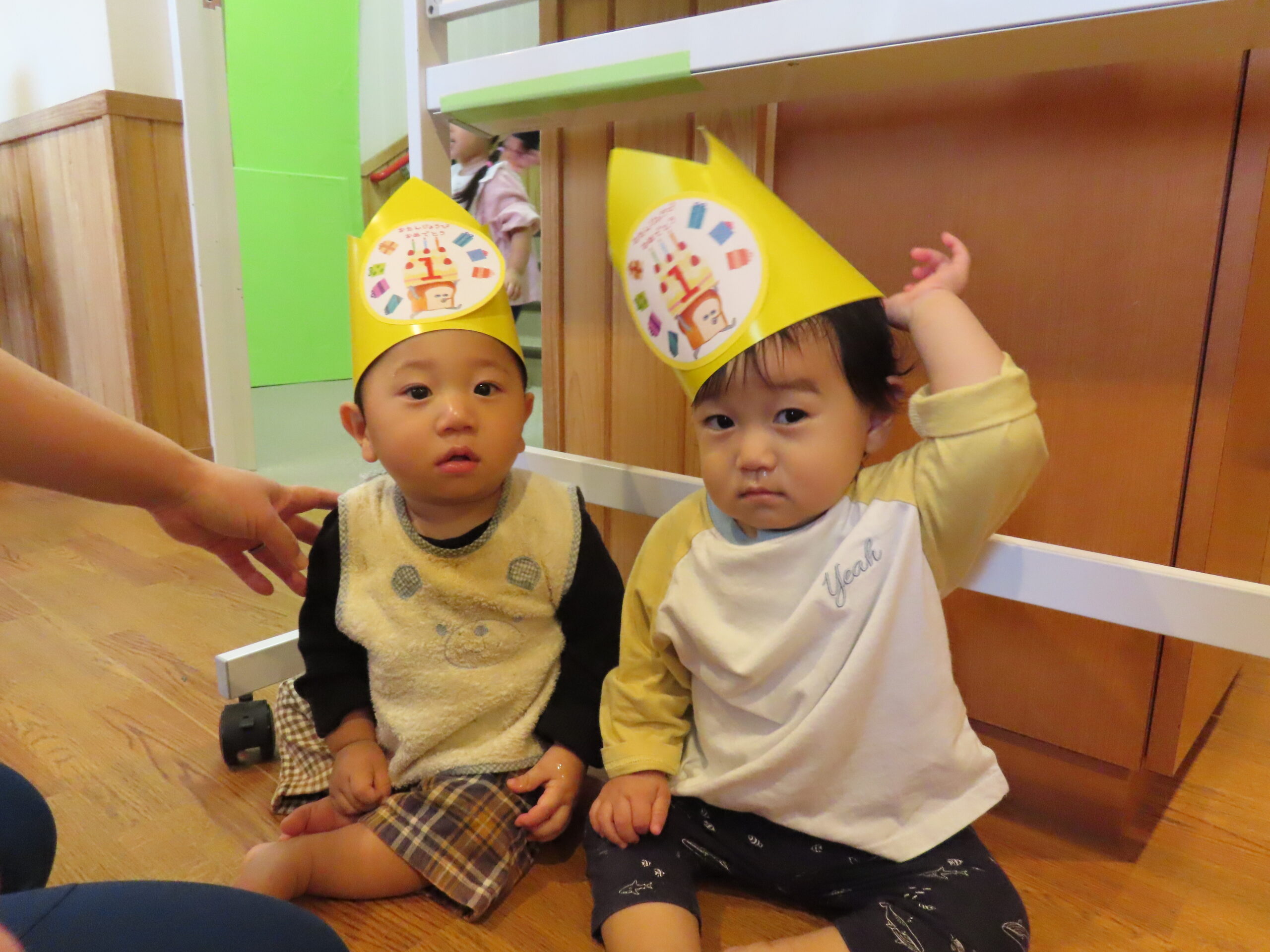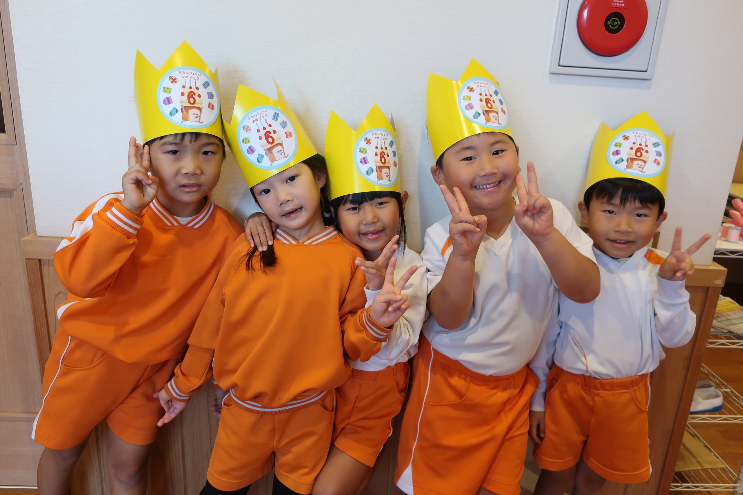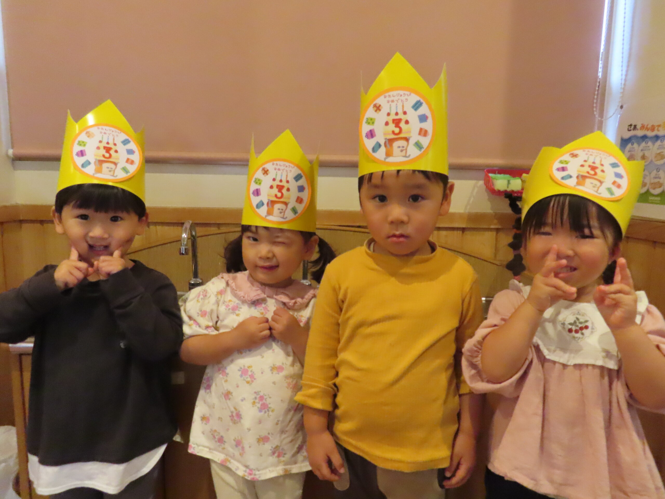 冠をかぶって、にっこり笑顔のお友だちです😊