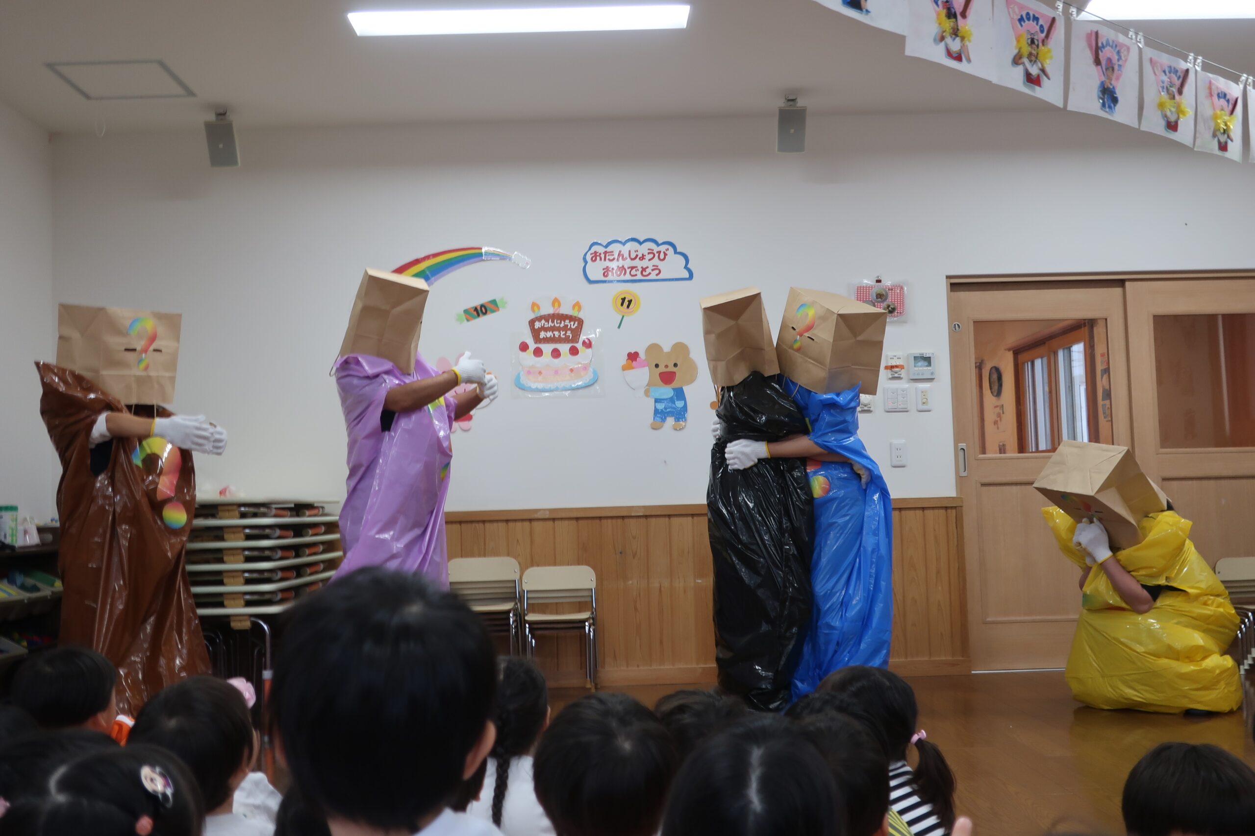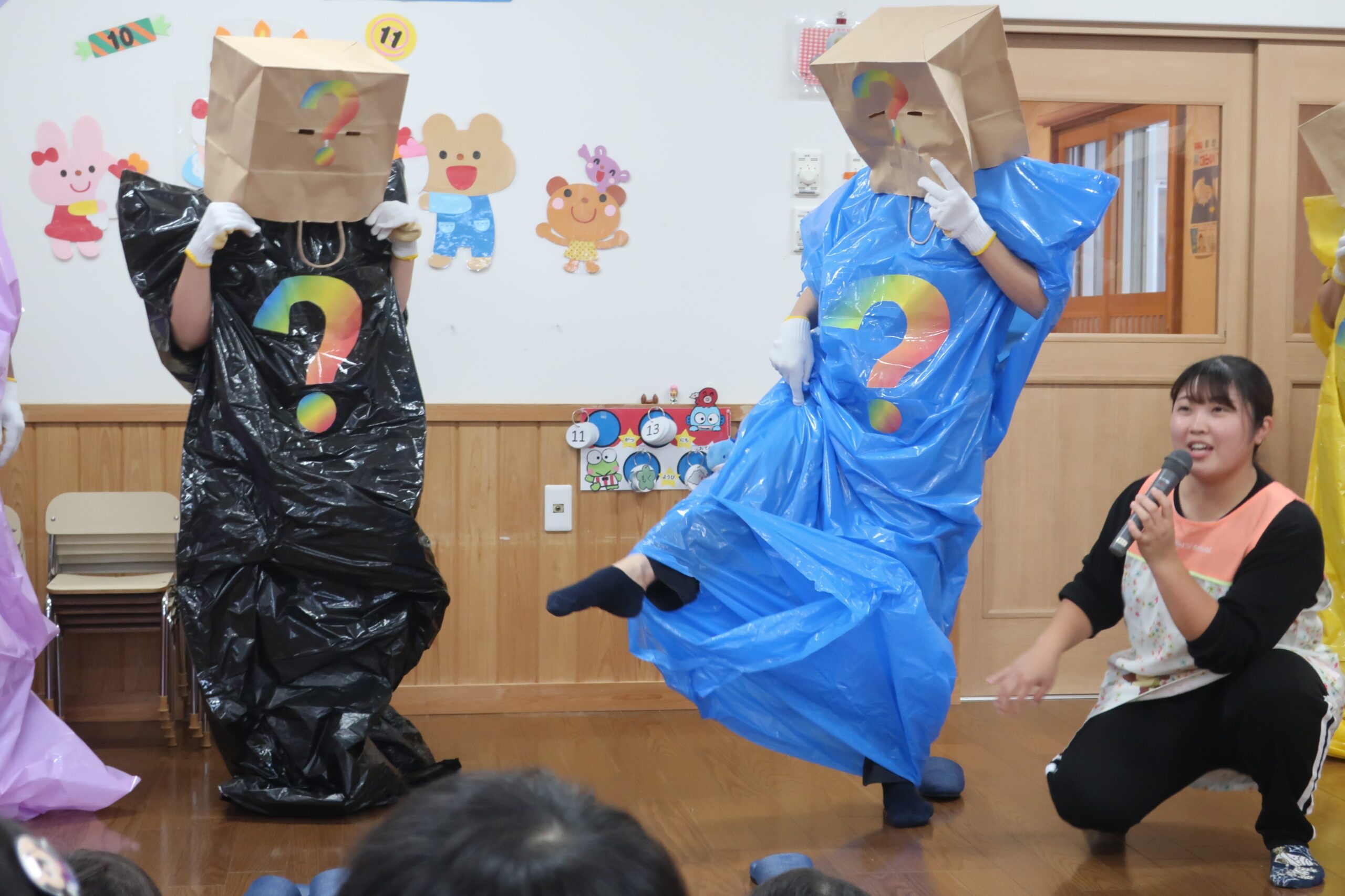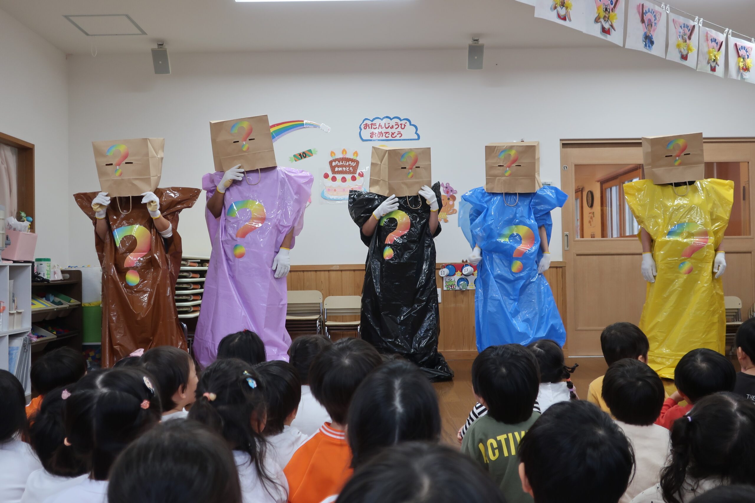 子どもたちは❝誰かな~?❞と不思議そうな顔をしている子や
